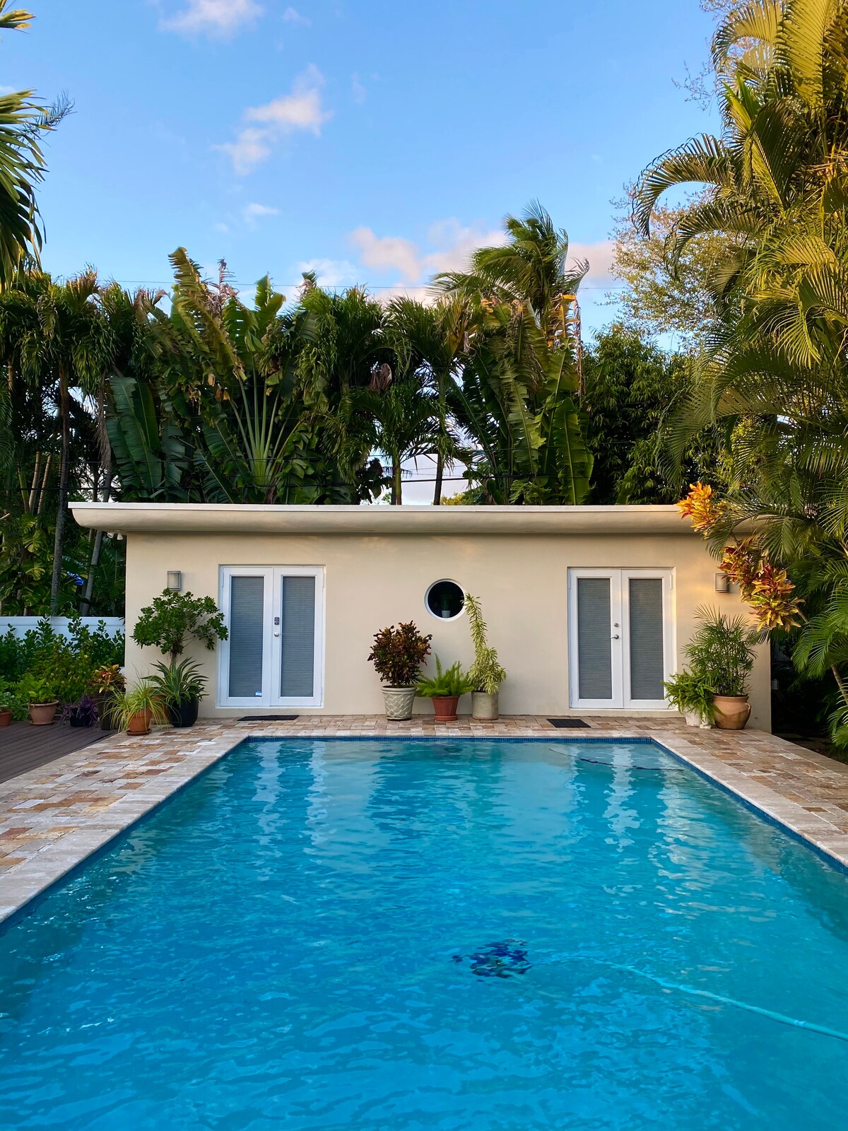 Bústaðurinn okkar er í mjög rólegu íbúðahverfi, 15 mínútum frá ströndinni (Bal Harbor-svæðið), 20 mínútum frá bæði Miami og Fort Lauderdale-flugvöllum. Bústaðurinn er í bakgarði aðalhússins en aðskilinn og með sjálfstæðri aðkomu. Njóttu hitabeltisgarðsins okkar og fallegu sundlaugarinnar aftast í húsinu okkar. Deildu aðeins með eiganda. Við gefum gestum okkar forgang til að njóta þess! Bílastæði eru í framgarðinum okkar. Ekkert eldhús en örbylgjuofn og ísskápur. Sjónvarp, snúra og ÞRÁÐLAUST net. Lagt er til að hafa bíl.