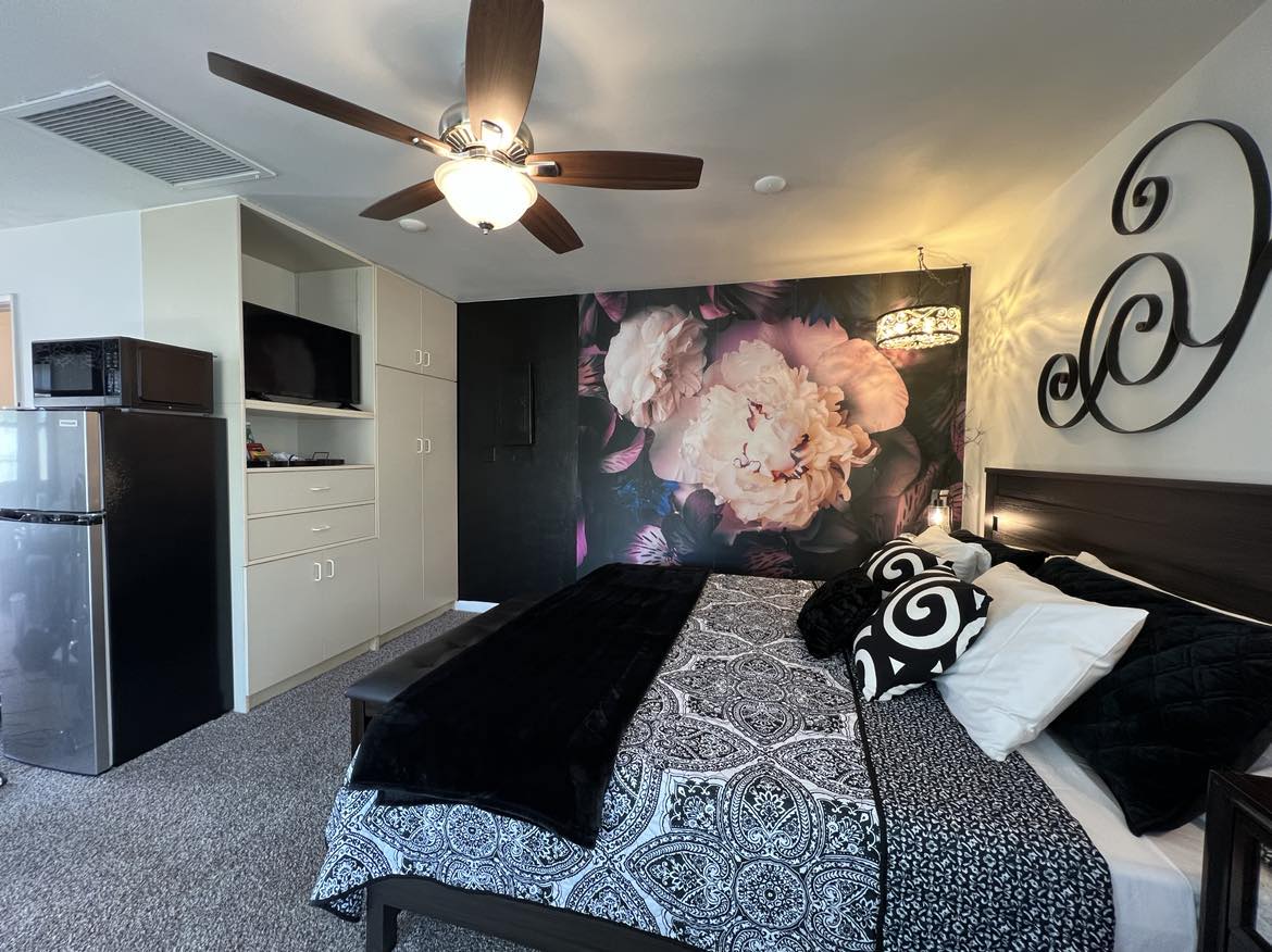Bungalow okkar er líflegt rými með húsgögnum frá miðri síðustu öld og öllum þægindum heimilisins. Njóttu þess að elda máltíðir í glæsilega, fullbúna sælkeraeldhúsinu okkar með veitingastöðum í barstíl. Kúrðu í sófanum og njóttu kvöldsins með kvikmynd. Sötraðu kokkteil og njóttu sólarinnar í ótrúlega bakgarðinum. Farðu á æfingu með líkamsræktinni okkar á bakveröndinni. Það eru margar ástæður fyrir því að fara út og skoða Phoenix en ef þú ákveður að gista inni verður upplifunin þín jafn ánægjuleg!