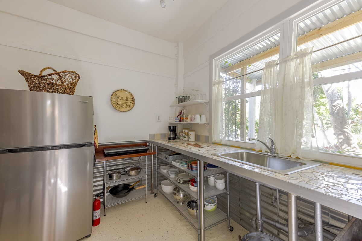 Stórt stúdíó sem er hluti af stilt heimili í rólegu hverfi. Gestgjafinn býr uppi. Einkaleigueiningin er niðri við vinnusvæði listamannsins. Leigan er með sérinngangi og lítilli verönd aftast. Stofan er aðskilin frá svefnaðstöðu með gluggatjöldum og er með king-size rúmi. Hægt er að breyta rúminu í tvo tvíbura sé þess óskað. Frábær staðsetning, 1 km frá 5th avenue, 3 km frá ströndinni.