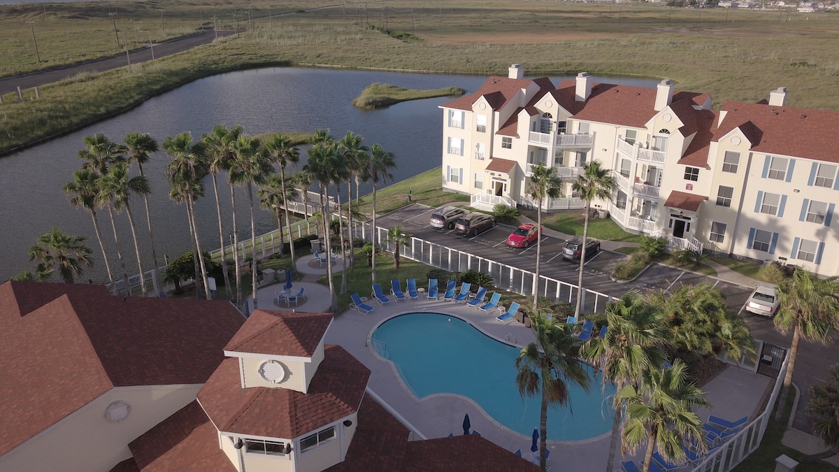 Halló! Our beach Vacation Condo is on the North Padre Island, the safest place in Corpus Christi. A king bedroom suite and a bonus Loft with queen bed. Útsýni yfir smábátahöfnina, sundlaugina og víðáttumikið útsýni yfir síkið. Uppfært eldhús og baðherbergi. Tveir svefnsófar í stofunni svo að svefnplássið er alls 6. Fiskibryggjur og tvær sundlaugar (önnur fyrir utan smábátahöfnina og önnur upphituð innisundlaug). Komdu með vatnsleikföngin þín, veiðarfæri og skemmtu þér! Göngufæri við marga bari, veitingastaði og verslanir.