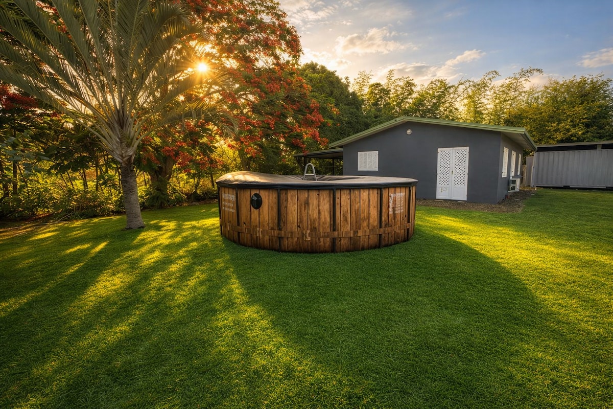 Taktu þér frí og slakaðu á í þessari friðsælu vin. Við opnum nýja sveitagistingu af F1-flokki fyrir allt að 4 manns á leiðinni að Nordistes (Bourail) við rætur Poméa-skógarins, í um 6 mínútna fjarlægð frá ströndum La Roche og Poé og í 8 mínútna fjarlægð frá Deva. Útsýni yfir vottaða Biopasifika-garðinn og Gouaro-skóginn.