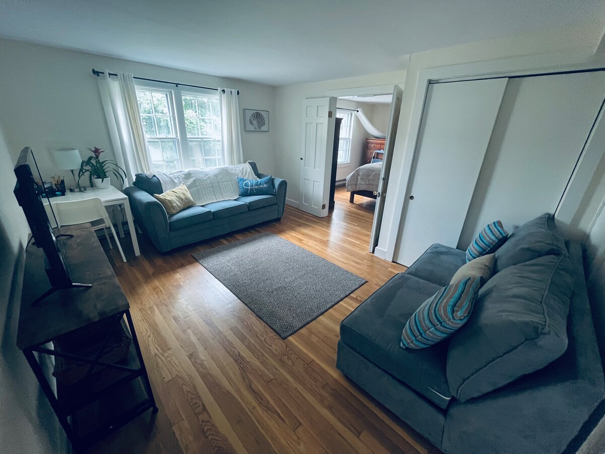 Velkomin 2026! Við hlökkum til að þú heimsækir RockyNeck í Gloucester. Þú munt njóta ýmissa sérstakra afþreyinga og viðburða í sumar og haust. Við erum staðsett í „kyrrláta endanum“, við einkarekna íbúðargötu í sögufrægri listamannanýlendu . Almenningssamgöngur í nágrenninu, Audubon staðir, menningarviðburðir, Gloucester Stage Co og strendur . Bílastæði er við götuna með bílastæði í nágrenninu ef þörf krefur. ATHUGAÐU: Garðurinn er einkarekinn Komdu með lykilorðin þín fyrir sjónvarpið