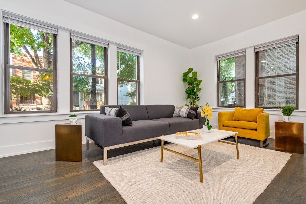 ★Bright & Bold 1BR in Roscoe Village + Fireplace★