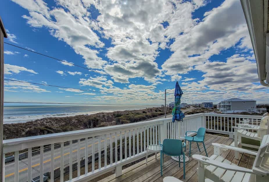 Linens and household supplies provided. Dogs OK. Welcome to The Ocean Breeze, a beautifully renovated oceanfront 3 bedroom, 3.5 bathroom townhouse with breathtaking, unobstructed Atlantic views. Fall asleep to the sound of waves and wake to stunning sunrises. Enjoy three private balconies with comfortable outdoor seating, perfect for relaxing with family and friends while taking in the ocean breeze. Keep an eye out—dolphins are often spotted just offshore, making every stay unforgettable.