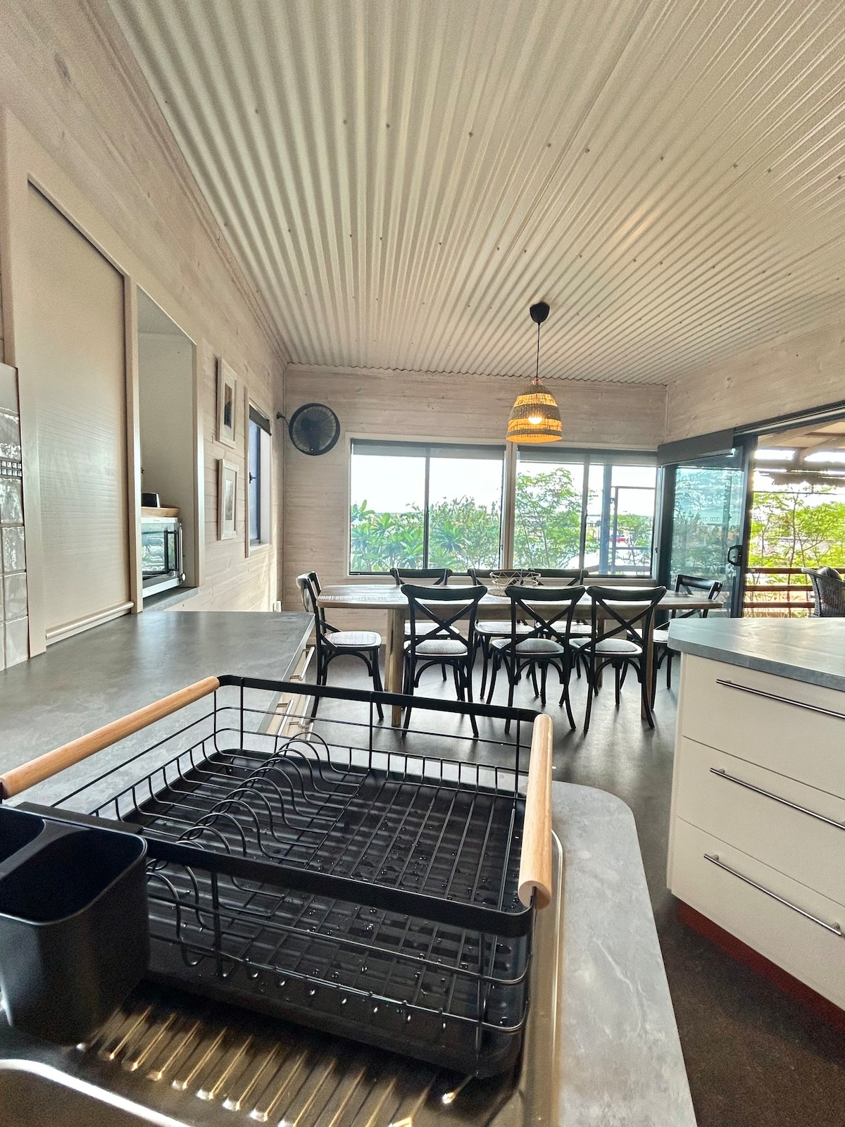 Þetta er sjálfstæð strandlengja, hluti af aðalheimilinu en með einkainngangi fyrir frið og næði. Svefnpláss fyrir allt að 3–4 gesti með queen-rúmi og svefnsófa er hann fullkominn fyrir pör, litlar fjölskyldur eða vini. Slakaðu á með bók, njóttu hins heimsfræga Ningaloo-rif eða hladdu við sjóinn. Þetta létta og rúmgóða afdrep býður upp á fullkomna blöndu af þægindum, þægindum og sjarma við ströndina í aðeins 5 mínútna akstursfjarlægð frá ströndinni og í aðeins 5 mínútna akstursfjarlægð frá verslunum og veitingastöðum á staðnum.