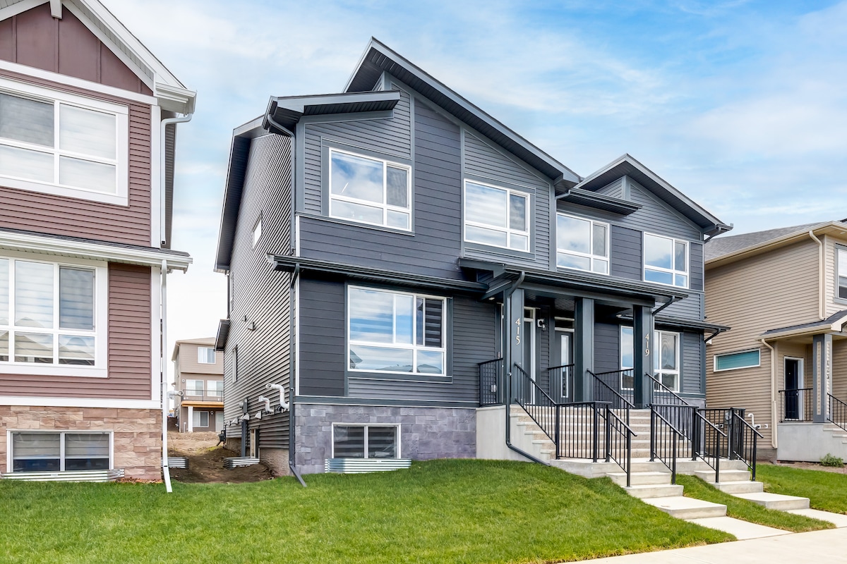 Njóttu vetrarins og slakaðu á í þessu rólega og stílhreina rými. Njóttu friðhelgi að fullu aðskilins heimilis með útsýni yfir ólympíugarði Kanada (Winsport) og kvöldsólseturs. Lúxuseiginleikar, þar á meðal miðlæg loftræsting, kvarsborð, harðviðargólf og endurnærandi loftpottur. Staðsett í stuttri göngufjarlægð frá Bow River og skjótan aðgang að Trans-Canada Highway (Hwy 1) fyrir fjallaævintýrin þín! Inniheldur einkabílageymslu með einni upphitun og bílastæði við götuna fyrir skammtíma- eða langtímagistingu.