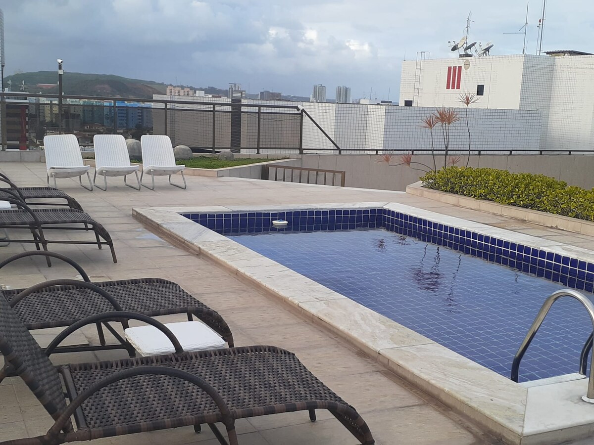 Vönduð loftíbúð með glæsilegu sjávarútsýni. Staðsett í Smart Farol da Barra, notalega eignin er ein húsaröð frá Farol da Barra ströndinni, í miðju Salvador karnivalrásinni. Það er nálægt Morro do Cristo, Praia do Porto da Barra, Shopping Barra, en aðallega Farol da Barra, sem er í 5 mínútna göngufjarlægð. Íbúðin er með vel útbúna líkamsræktarstöð, veisluherbergi, vinnuaðstöðu, sjálfsafgreiðsluþvott og þaksundlaug.
