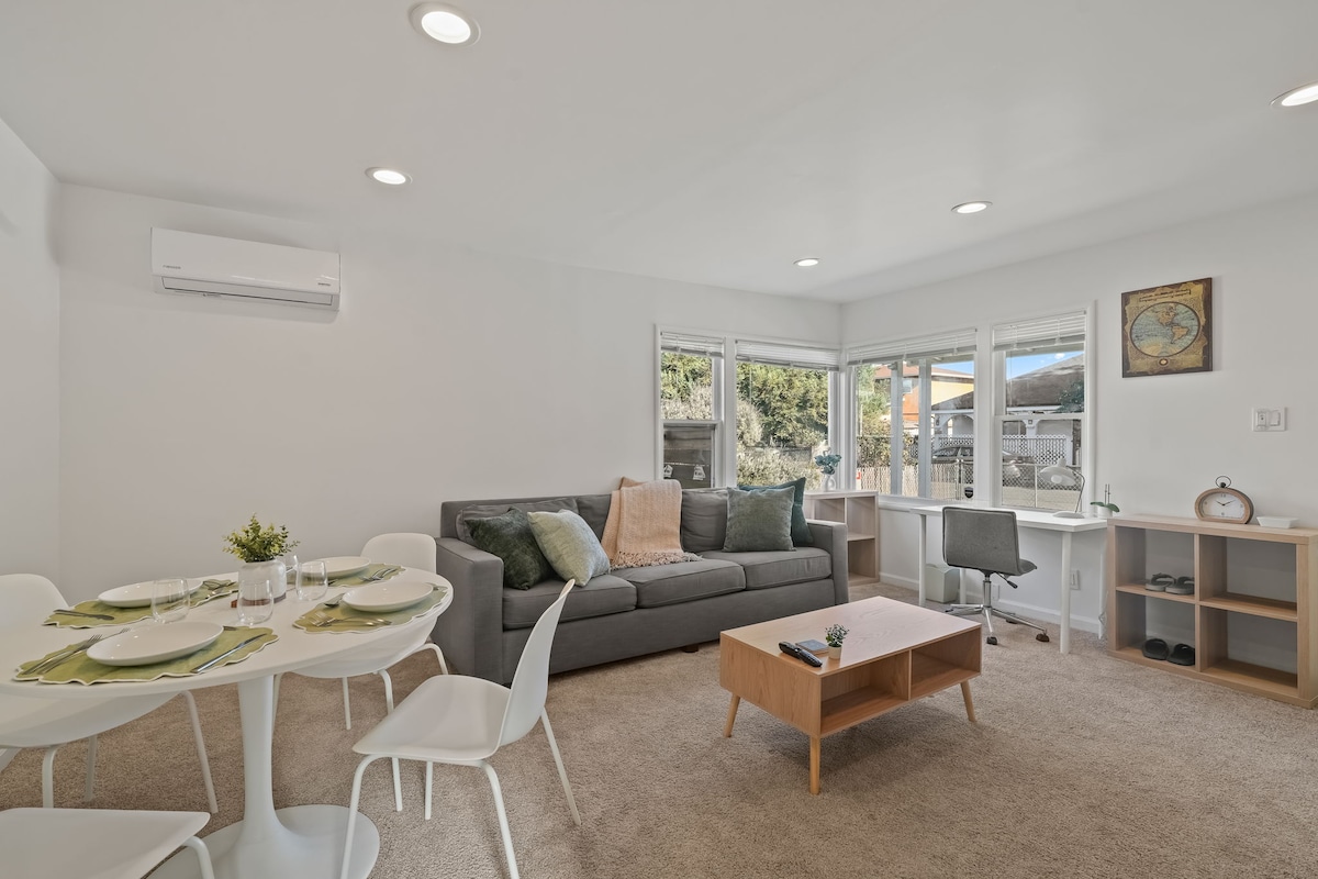 Verið velkomin í hinn rólega Temescal Jewelbox! Íbúðin okkar í bakgarðinum var nýlega uppgerð og er heimili að heiman í einu líflegasta hverfi Oakland miðsvæðis. Við elskum Temescal! Fullbúið nýtt eldhús, ljós fyllt stofa með metz-tónlistarskápnum okkar frá 1957, endurbyggður og Bluetooth samhæfur. Streymdu leiklistunum þínum úr sérstaka þráðlausa netinu. Komdu þér fyrir í svefnherberginu á efri hæðinni með notalegum lestrarkrók, skrifborðsplássi, „walk-up“ skáp og litlu baðherbergi með sturtu.