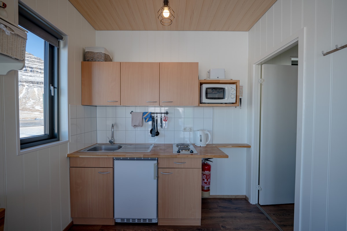 Fönkí kofi með útsýni yfir fjörðinn