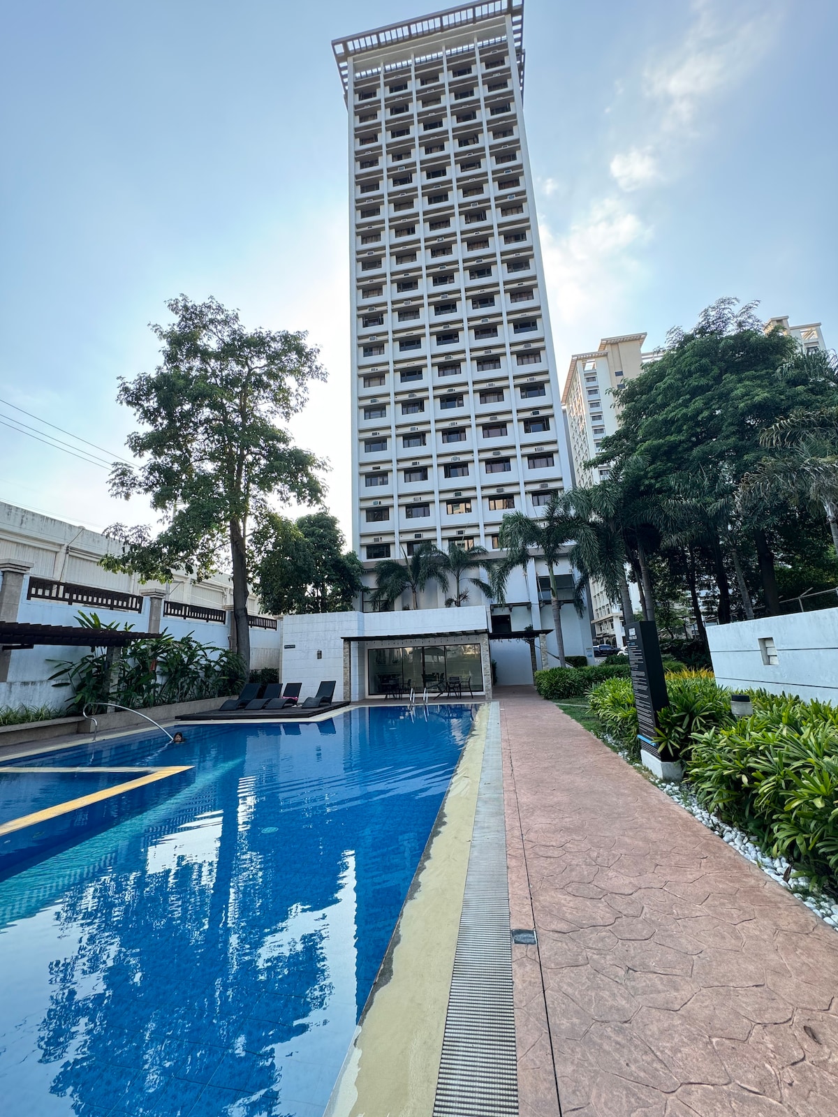 Experience tropical comfort and green space in the city. Stay in a peaceful yet centrally-located place in south Metro (Filinvest City, Alabang, Muntinlupa). Within hotel/mall complex and a short walk to malls, supermarkets, offices, school, and hospitals. Accessible through expressways from Manila airport. Enjoy Monopoly game, PS5 games, Netflix, Youtube, TV channels, or simply use fast 350mbps WIFI. Swimming pool (P600/use) & parking (P300/day) available as addt'l fee (subject to change).
