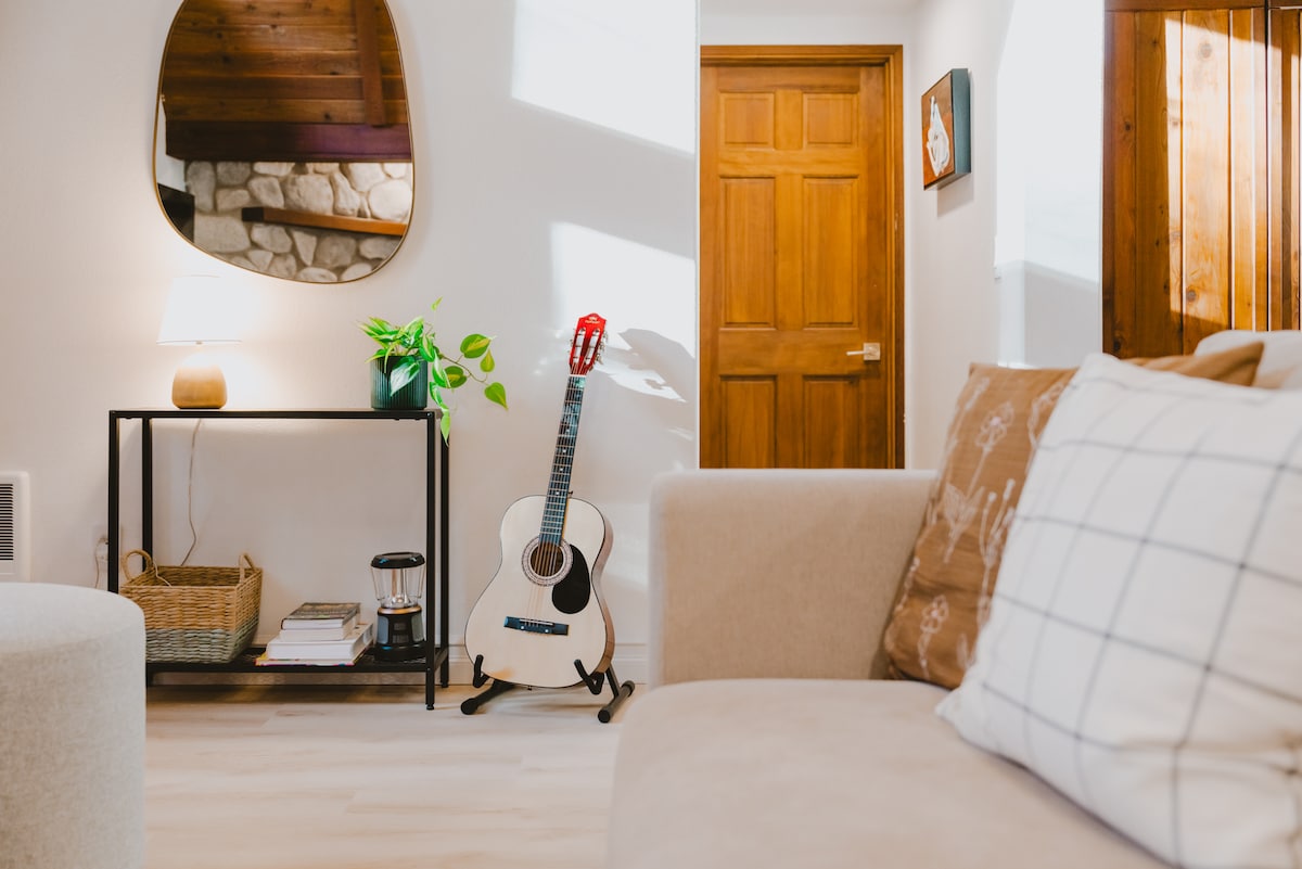 Verið velkomin í Emmons Suite á Ashford Lodge! Staðsett í smábænum Ashford, aðeins 9 km frá innganginum að Mt. Rainier-þjóðgarðurinn, þetta er fullkomin bækistöð fyrir öll fjallaævintýrin þín. Emmons Cabin er stærsta stúdíósvítan í gestahúsinu okkar og er með notalegar, gamlar innréttingar, þar á meðal risastórt rúm í queen-stærð, arinn, eldhúskrók, sérbaðherbergi, þráðlaust net og sérinngang. Eignin okkar er með sameiginlegan heitan pott, grillgarð, eldstæði og aðgengi að gönguleiðum.