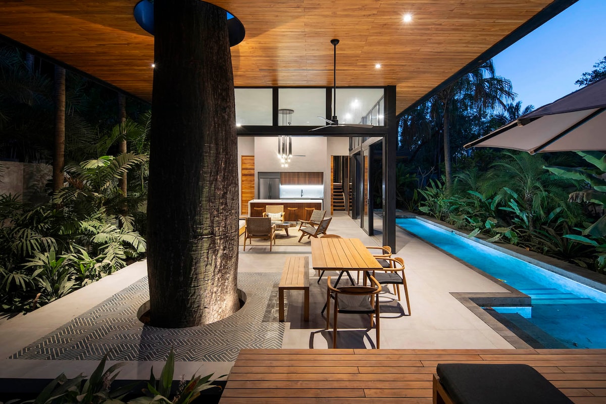 Experience modern tropical living in this architecturally stunning home on Calle Las Olas. Just a 5-minute walk to the sand, the house features a beautiful open patio built around a majestic Ceiba tree, creating a unique indoor-outdoor living space. The home offers 3 bedrooms and 3.5 bathrooms, a private pool, and a lush garden surrounded by high privacy wall creating and intimate space. Modern design, off-street parking, and AC in all bedrooms and the living room ensure a comfortable stay.