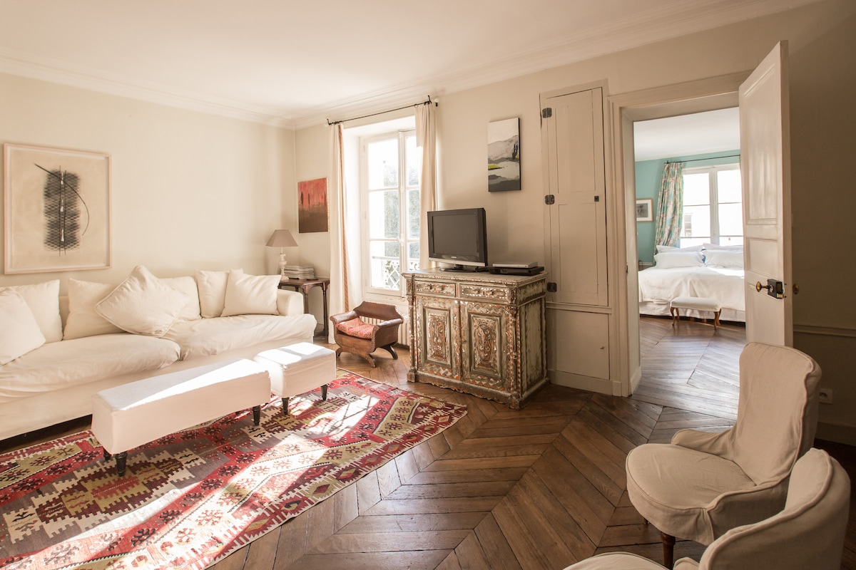 Í einni af litlu götunum fyrir aftan kirkjuna Saint Germain des Prés, í húsi sem var byggt árið 1650, bíður þín notalegt tveggja svefnherbergja rými. Annað rúmið er 180 cm stórt en hitt 160 cm. Tvö salerni, eitt baðherbergi með mjög stórri sturtu. Ég gerði upp og endurnýjaði þennan sögulega stað á kærleiksríkan hátt. Það er rólegt og heillandi með gömlum steinum og viðarbjálkum. Rétt handan við hornið: verslanir, veitingastaðir, djasstónlistarmenn, þekkt kaffihús og fræg aðföng.