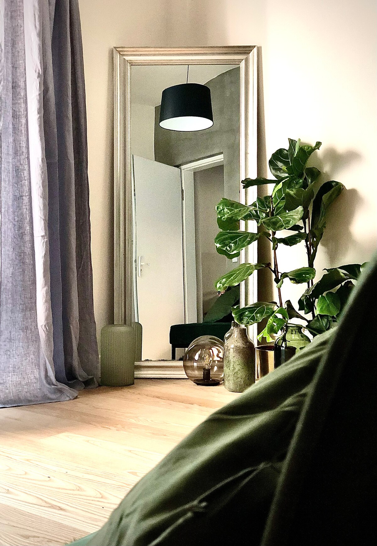 🌿 Dekraðu við þig með gistingu í nútímalegri íbúð sem er stillt á notalegum grænum tónum og njóttu frábærs morgunverðar á OLLIES bistro á hverjum degi! 🛌 Íbúðin er tilvalin fyrir 1–4 manns. Það er stórt rúm (180×200 cm) með gæðadýnu og svefnsófa (140 cm) sem býður upp á flata og þægilega svefnaðstöðu fyrir allt að 2 manns þegar það fellur saman. 🍳 Morgunverður innifelur: morgunverð, kaffi eða te og ferskan safa á mann.