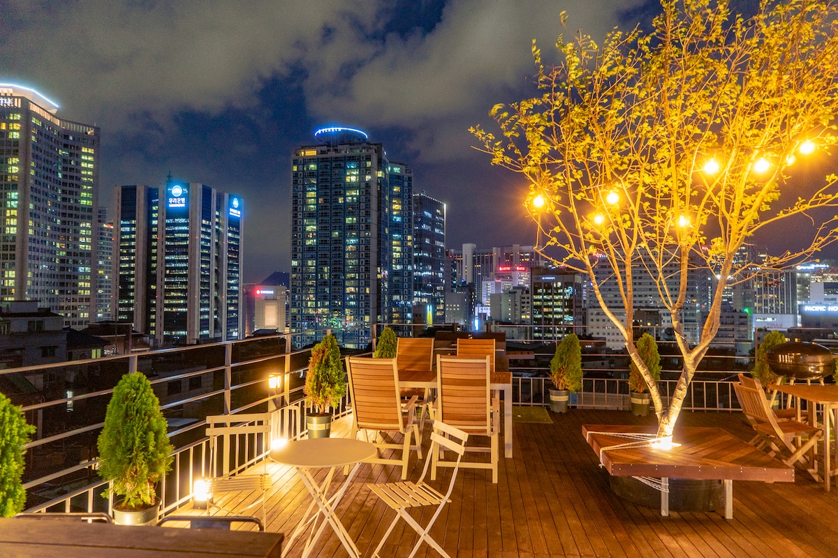 Loftíbúð, þakíbúð, 5 mín frá Myeondong, grill