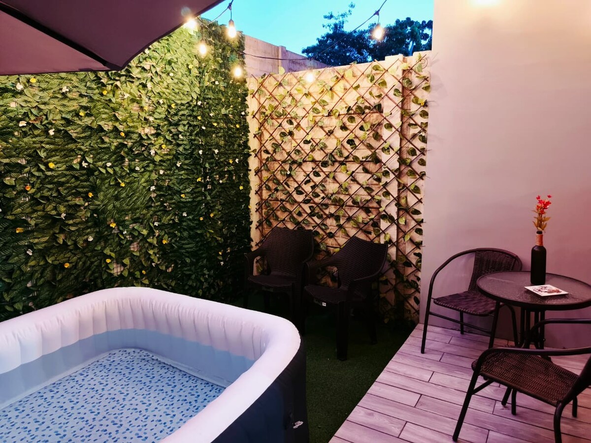 Acogedor apartamento ideal para familias o grupos de hasta 8 personas, ubicado a solo 15 minutos del IRTRA. Disfruta de un relajante jacuzzi y habitaciones con aire acondicionado para mayor comodidad. La cocina, el comedor y la sala están completamente equipados para que te sientas como en casa. Además, cuenta con WiFi gratuito y un área de azador perfecta para compartir. ¡Tu escapada perfecta te espera con todo lo que necesitas para descansar y disfrutar!