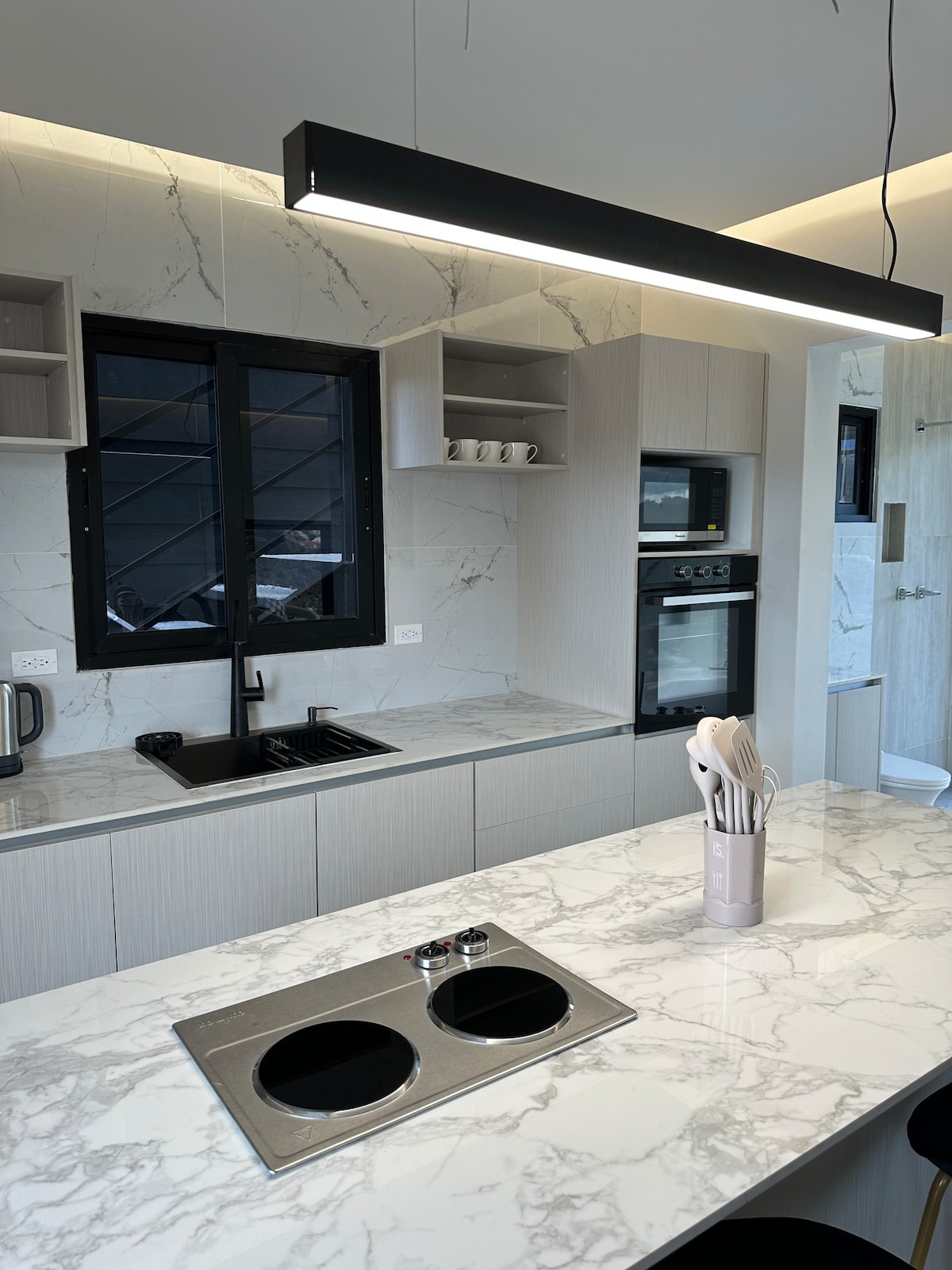 Verið velkomin í fallega hannað rými á svölu Chiriquí-hálendinu. Þetta litla og notalega hús er fullkomið fyrir þá sem vilja kyrrð og ró. Almenningssamgöngur í boði í aðeins 5 mínútna göngufjarlægð (rútur til Cerro Punta David). 10 mínútna akstursfjarlægð frá miðbæ Volcán og 15 mínútur frá Cerro Punta. Þægileg, hrein eign. Pabbi minn býr aftast í eigninni, í algjörlega aðskildu herbergi. Hann er vingjarnlegur og kurteis og því er friðhelgi þín tryggð