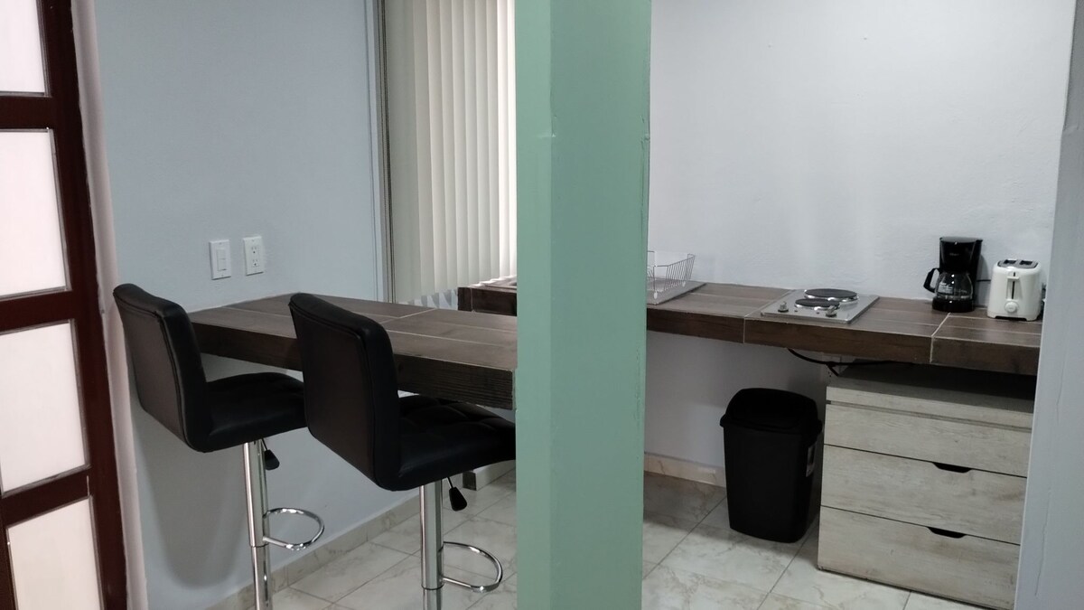 Es un espacio tranquilo, moderno, céntrico, nuevo y acogedor para pasar una excelente estancia corta o larga en la bella ciudad de Zamora El espacio Un Estudio independiente con chapa electrónica para mayor comodidad el cual cuenta con todos los servicios como son AIRE ACONDICIONADO, agua caliente, Netflix, internet de gran velocidad Destacable A tan solo 13 minutos del centro Centro comercial sentura a 10 minutos Bodega Aurrera con Cajero BBVA a 4 minutos Oxxo a 4 minutos
