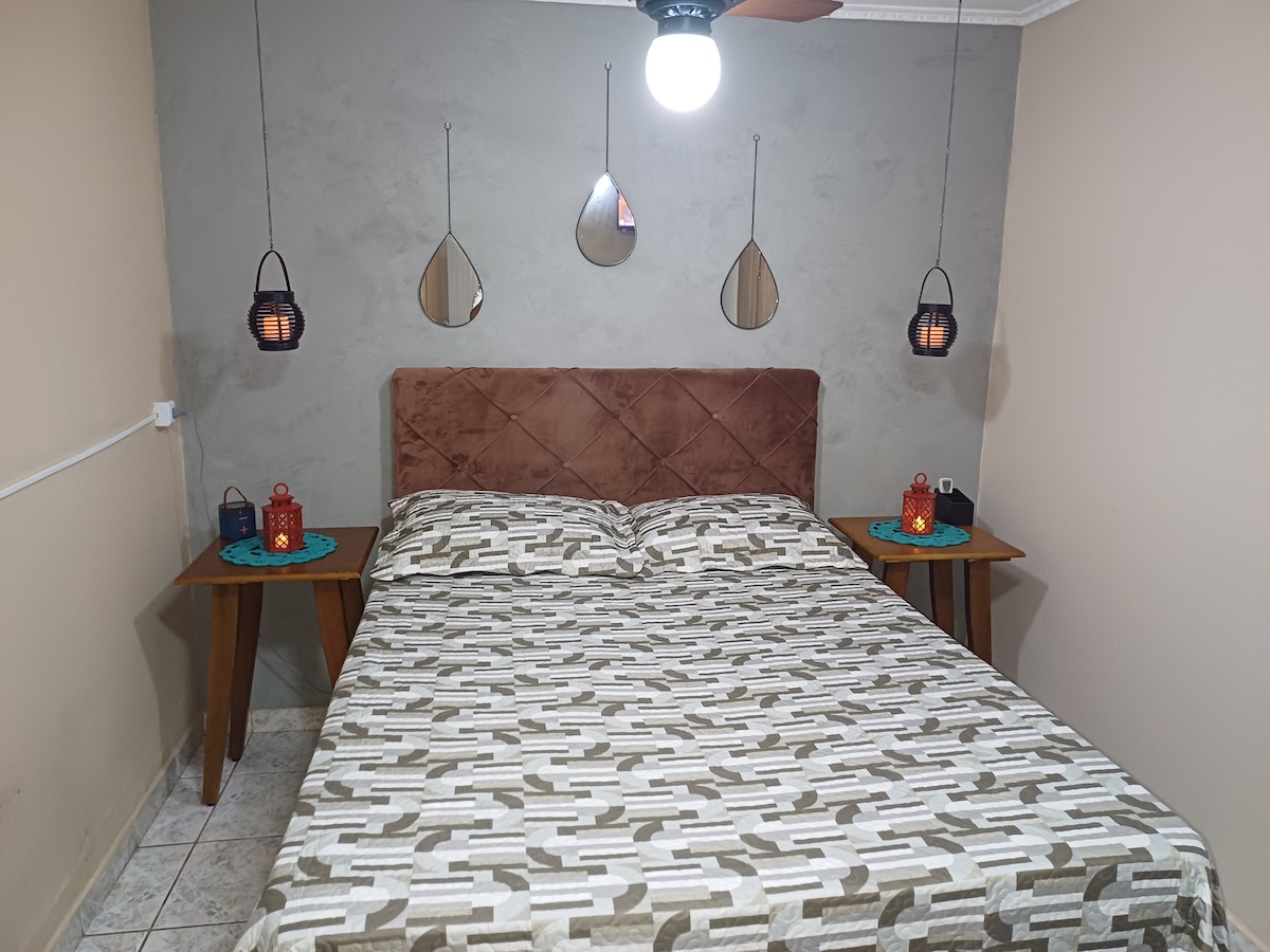 Rými fyrir þá sem vilja njóta kyrrðar og kyrrðar með sérstöku fólki. Okkur er annt um þrif og fullkomið hreinlæti svo að það séu meiri þægindi og gestrisni. Eignin er staðsett í Residencial São João Batista, rólegu og öruggu hverfi í borginni Franca, með greiðan aðgang að matvöruverslunum, bakaríum, apótekum og sjúkrahúsum. Sundlaugin er með sólarkyndingu. Rými okkar er fyrir hamingjusamt fólk og fjölskyldur! Verið velkomin !