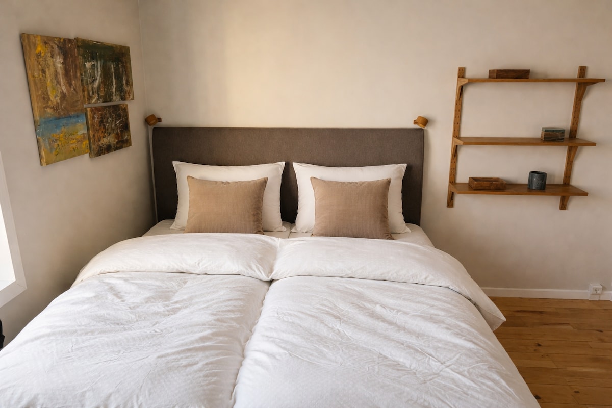Björt og nútímaleg tveggja herbergja íbúð nálægt miðborginni. Njóttu dvalarinnar í þessari fallegu 55 m ² íbúð sem samanstendur af svefnherbergi með hjónarúmi, eldhússtofu með svefnsófa, baðherbergi og svölum. Íbúðin er staðsett á svæði í aðeins nokkurra mínútna göngufjarlægð frá miðbænum, kaffihúsum, verslunum og menningarlegum kennileitum. Fullkomið fyrir bæði stutta og lengri dvöl – þægindi, þægilegt og rólegt svæði.