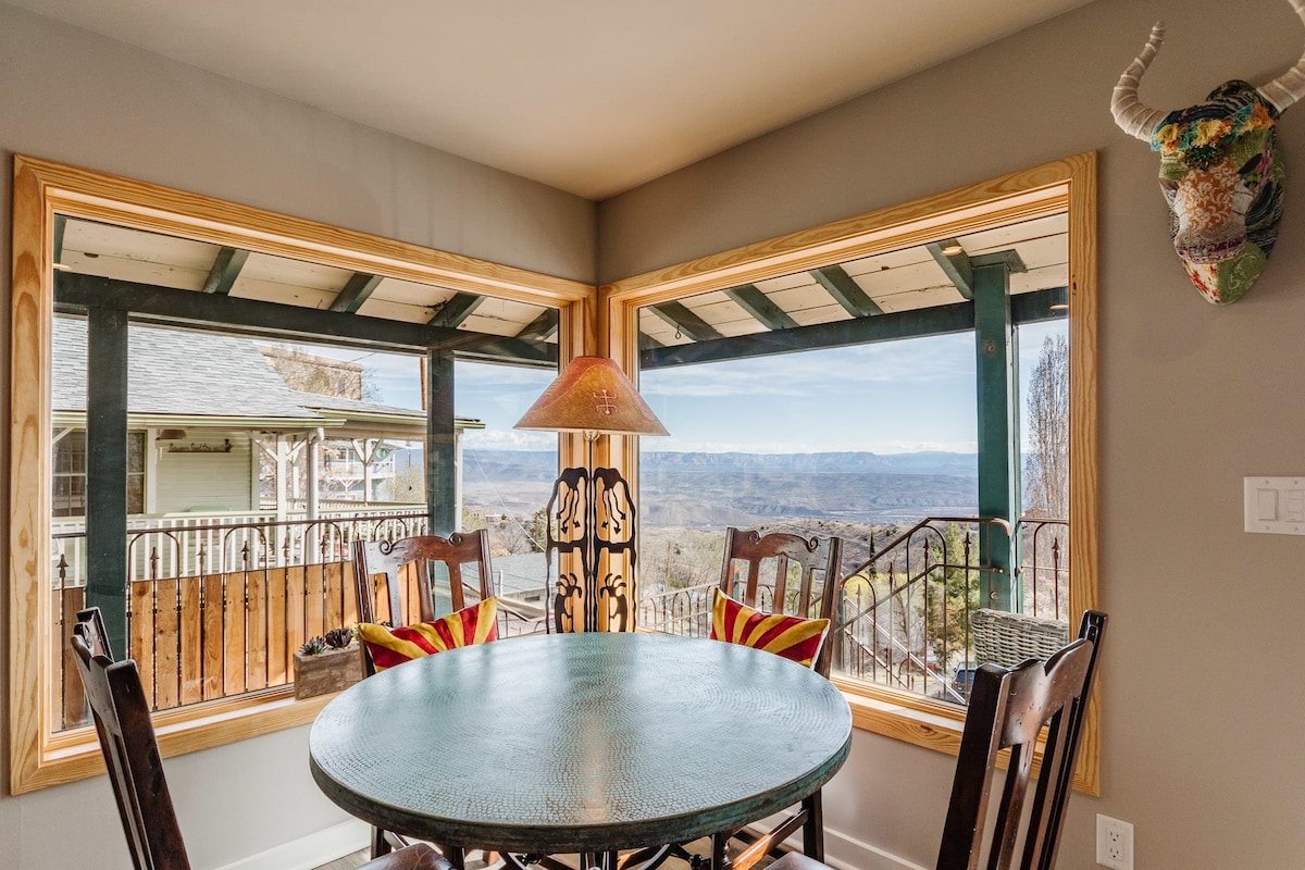 Öruggt, hreint og sólríkt heimili með tilkomumiklum sólarupprásum og útsýni yfir Verde-dalinn. Miðsvæðis, auðvelt að finna og þægilegt að finna veitingastaði, verslanir, almenningsgarða og margt fleira; miðstöð til að skoða Sedona, Jerome, Flagstaff og Miklagljúfur. Skipt gólfefni veitir næði milli BR-svítunnar og annarra rúmgóðra svefnherbergja (2 queen; 2 XL twin). Eldhúsið er vel útbúið fyrir heimilismat. Bakverönd með grilli og útiaðstöðu og verönd að framan til að njóta ótrúlegra sólarupprása. Engir stigar.