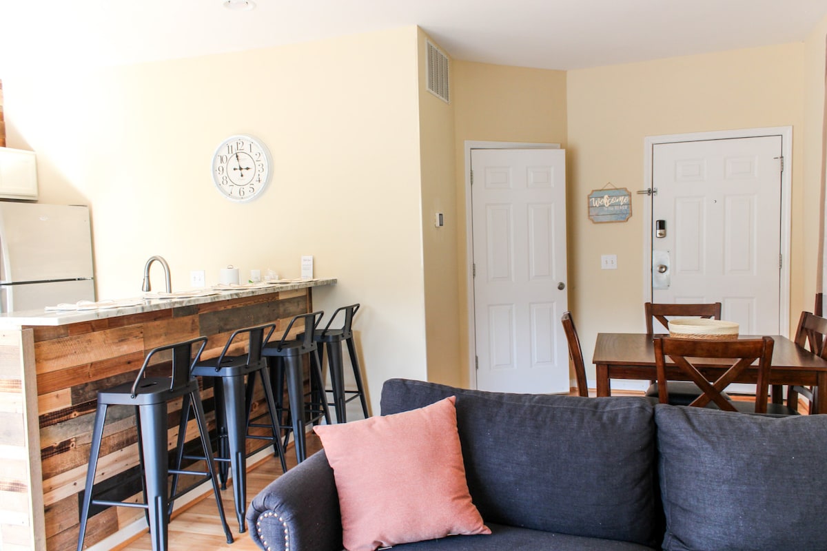 Þetta er fullkominn flótti fyrir þá sem eru að leita að notalegum og flottum lúxus við vatnið. Í aðeins nokkurra skrefa fjarlægð frá ósnortinni verndaðri sjávar- og hjólafæri við göngubryggjuna, veitingastaðina og næturlífið. Nýlega uppfærð stílhrein íbúð okkar mun gefa þér emersion af strand fegurð og fjölda staðbundinna aðdráttarafl ásamt aðgangi að marsh hlið laug, hjólum og grillum. Byrjaðu daginn á kaffibolla og sólarupprás við sjóinn og slakaðu á með vínglasi til að njóta sólseturs með óviðjafnanlegu mýrarútsýni.