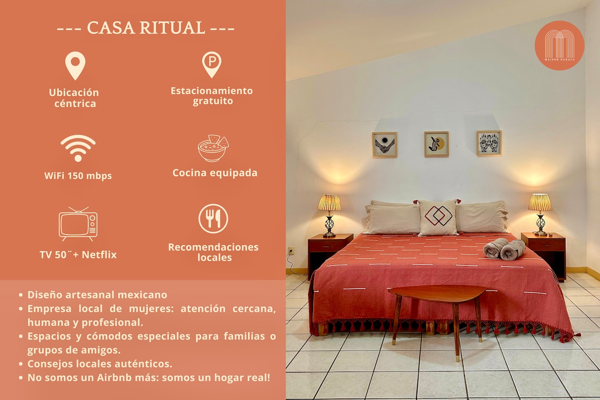 Njóttu þín á þessu friðsæla og minimalíska heimili sem er fullkomlega staðsett í einu af þekktustu hverfum Oaxaca-borgar! í aðeins 10 mínútna göngufjarlægð frá sögulega miðbænum. Á þessu heimili eru falleg viðaratriði í hverju horni, áferð grjótnámu og fallegur hringstigi. Það er mikil birta og falleg og róleg orka. Fáðu þér tebolla í stofunni í japönskum stíl um leið og þú skipuleggur næsta ævintýri í þessari töfrandi borg! Því miður eru öll gæludýr leyfð í þessari eign.