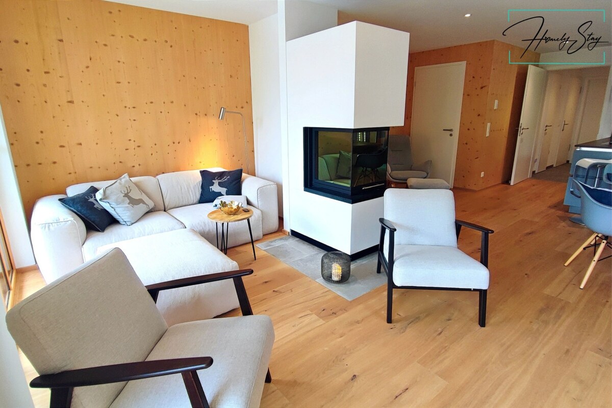 Njóttu frísins í þessari glæsilegu íbúð sem sameinar nútímalegan glæsileika og hefðbundinn sjarma. Björt stofan býður upp á magnað útsýni yfir fjöllin í kring og aðgang að notalegum svölum og stórri sólarverönd. Eftir ævintýradag getur þú slakað á í gufubaðinu þínu. Þessi íbúð er fullkomið athvarf fyrir þá sem vilja slaka á og náttúruunnendur. fyrir ógleymanlegar stundir í tilkomumiklu Alpalandslaginu!