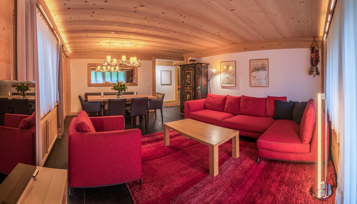 Unser neu renoviertes Chalet vereint auf harmonische Weise traditionellen Chalet-Charme mit modernen Annehmlichkeiten und bietet Ihnen eine perfekte Auszeit in der Natur. Eine sonnige Terrasse, Grill, ein kleiner Indoor Whirlpool und Sauna stehen zur Verfügung. Ein wunderschöner Kamin und eine perfekte Küche für romantische Abende vor dem knisternden Feuer.