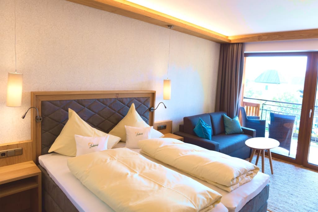 Nútímalegt og rúmgott með staðbundnum viði Reyklaust herbergi, u.þ.b. 25m², svalir með stólum. Herbergisaðstaða: þægilegt „king-size“ hjónarúm (eftir þörfum 2 tvíbreið rúm), kapalsjónvarp með himinhvolfi ókeypis, sími, öryggishólf (fartölva), þráðlaust net og eigin bílastæði án endurgjalds. Þægileg setustofa / sófi, skrifborð og viðargólf. Björt og vinaleg sérbaðherbergi með sturtu, salerni, hárþurrku, förðunarspegli og snyrtivörum.