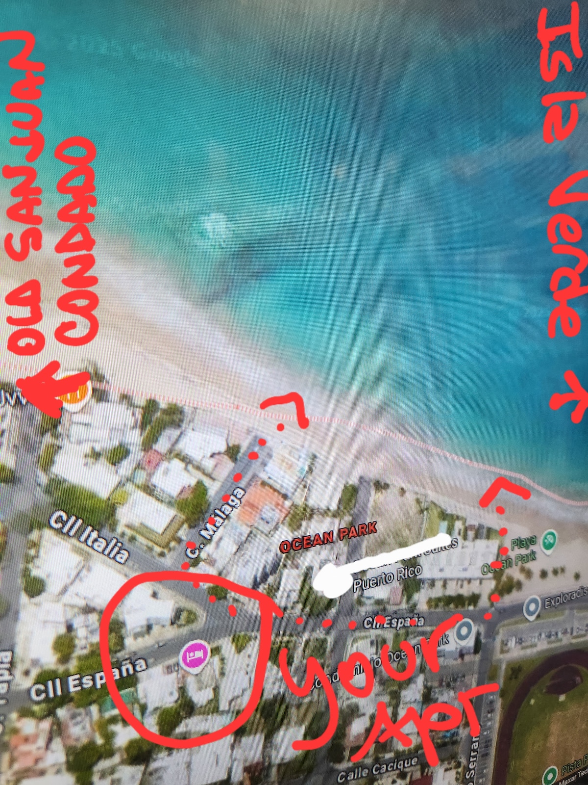 Við erum steinsnar frá fallegu Ocean Park Beach. Þessi íbúð á 2. hæð er með 1 svefnherbergi/1 baðherbergi innan um hitabeltisblóm, orkídeur og laufskrúð. Hann er með fullbúnu eldhúsi, rúmfötum og svefnsófa (futon) í stofunni ásamt nýju baðherbergi og A/C. Garðurinn er glæsilegur!!!! Njóttu friðsældarinnar á kvöldin og gosbrunnurinn og vindmyllan eru yndisleg. Hér eru boogie-bretti, kajak og meira að segja róðrarbretti. Ótrúlegir veitingastaðir og fjölbreyttir barir eru í næsta nágrenni við Calle Loiza.