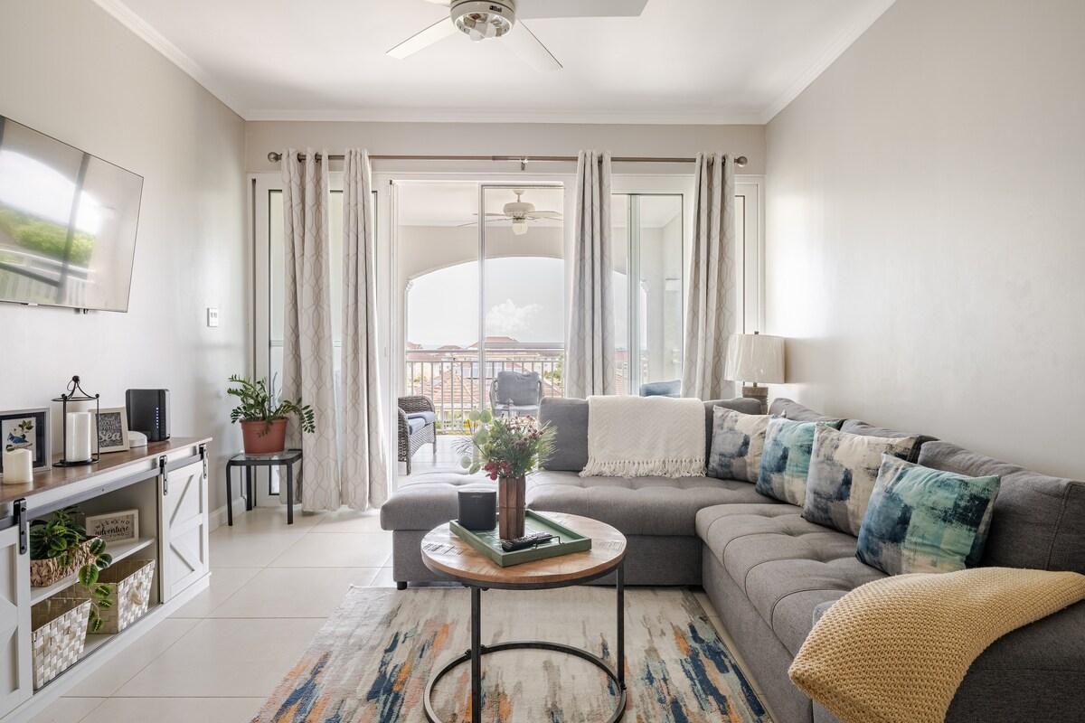 Slappaðu af í þessari stórkostlegu, friðsælu og afslappandi íbúð með tveimur svefnherbergjum og tveimur baðherbergjum sem eru fullbúin (A/C) á jarðhæð. Slakaðu á með Netflix í öllum svefnherbergjum. Njóttu Disney+, Netflix og kapalsjónvarps í notalegu stofunni á snjallsjónvarpinu, 55". Gakktu að sveitabúðinni og eldaðu svo eftirlætis máltíðina þína í fullbúnu eldhúsinu og njóttu þín í kringum borðstofuborðið eða á veröndinni með útsýni yfir sjóinn. Æfðu þig í líkamsræktinni, spilaðu tennis og kældu þig svo niður í sundlauginni á meðan þú leikur þér að sundlaug við barinn. Aðgangur að strönd er innifalinn