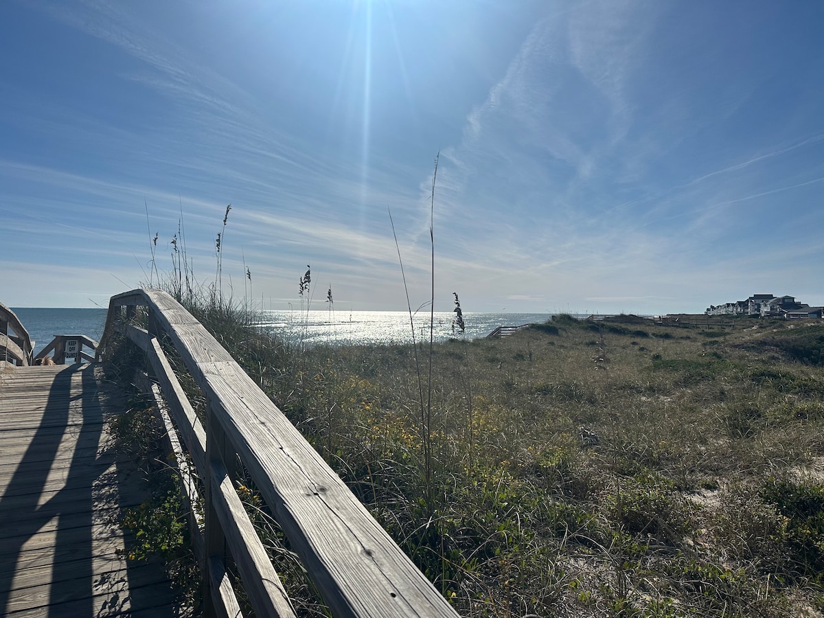Verið velkomin á heimili þitt við sjávarsíðuna að heiman! Við höfum bætt við öðru King-rúmi, nýjum sófa, hægindastól og öllum nýjum innihurðum. Rétt hjá sandöldunni frá Sun Kissed Seas finnur þú paradísina okkar sem veitti henni innblástur. Strendurnar hér eru staðsettar í North Avon um 1 km norðan við bryggjuna og eru breiðar og óumdeilanlegar. Hafðu það notalegt með kaffibolla og njóttu dásamlegrar sólarupprásar yfir Atlantshafinu. Eða fáðu þér vínglas á efri hæðinni á meðan þú horfir á tunglið á vatninu.