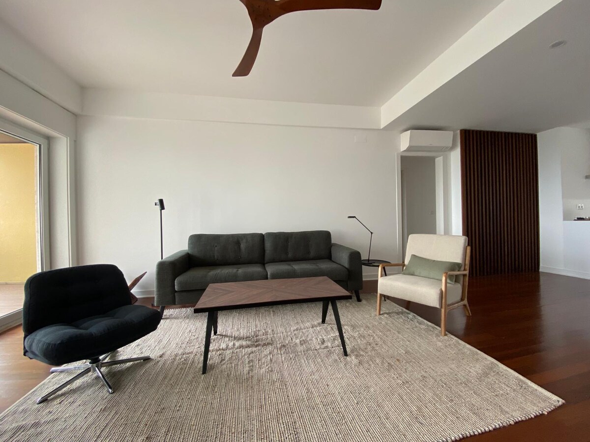 Oeiras, stór 4 herbergja íbúð staðsett við Santo Amaro-flóa og strönd, í 2 mínútna fjarlægð frá strandlestinni til Lissabon eða í 15 mínútna akstursfjarlægð frá miðbæ Lissabon og innan seilingar frá Cascais, Estoril og Sintra. Íbúðin hefur verið endurnýjuð að fullu með tveimur stórum nuddbaðherbergjum, aðskildu gestabaðherbergi og stóru fullbúnu eldhúsi. Vinsælustu portúgölsku hönnunin á borðstofu og stofu með arni og stórum svölum með útsýni yfir ströndina og smábátahöfnina í Oeiras.