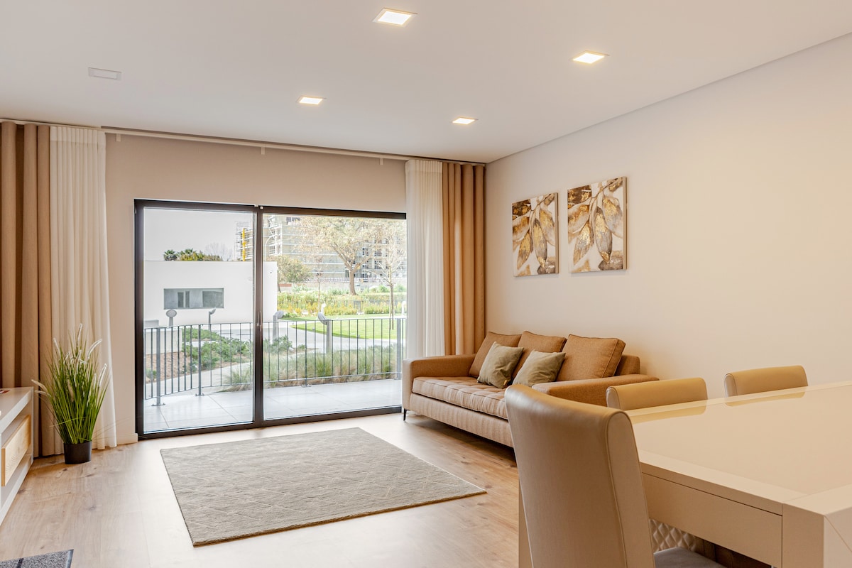 In this beautifully decorated apartment, located in a calm neighborhood in Oeiras, you'll be just a short train ride from both Lisbon and Cascais. It's perfect for families and friends looking for a quiet place to stay while visiting Portugal. It offers you Cable TV, Free Wi-Fi and AC units, in both the rooms and the living area. It's comprised by two cozy bedrooms, a kitchenette, two full bathrooms, a gorgeous living area, and a sitting area with a stunning view of the river and the city.