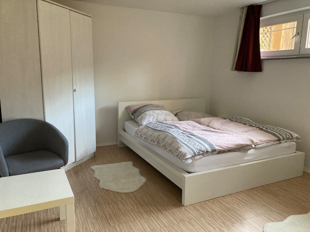 Halló kæru gestir, íbúðin er á jarðhæð í fallega Rhönblick-hverfinu í Bettenhausen. Þú hefur þitt eigið næði og fullbúnar íbúðir með handklæðum og hreinlætisþörfum. Einnig er stór garður, bílastæði fyrir framan húsið og fleira í næsta nágrenni. Eldhúsið er einnig búið helstu kryddum sem og sykri, ediki og olíu, kaffi, te og svæðisbundnum vellíðunardrykk. Við hlökkum til dvalarinnar.
