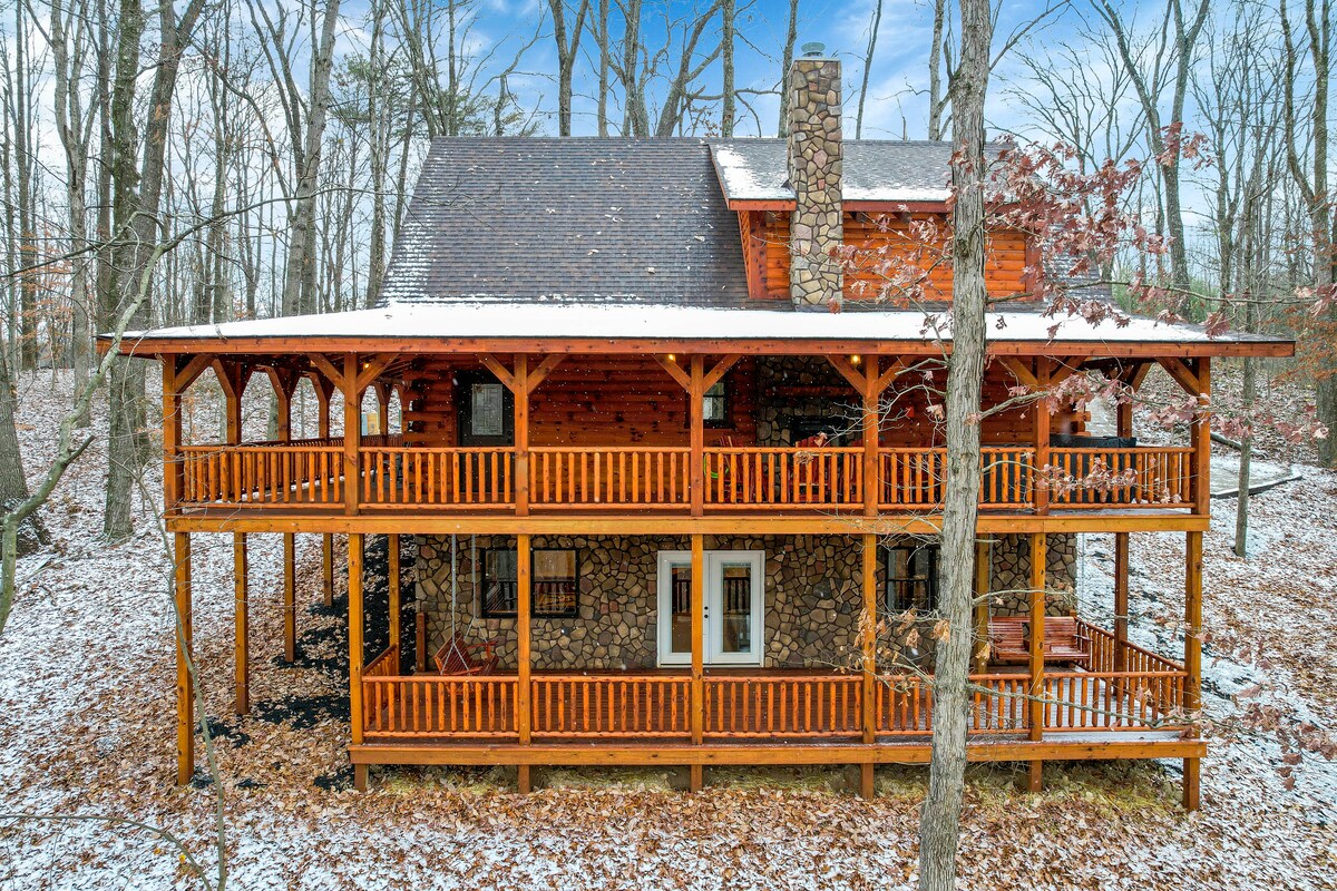 Rumple 's Retreat er notalegur 2ja hæða timburskáli með opinni lofthæð með 2 queen-size rúmum. Eignin er í nokkurra mínútna fjarlægð frá Grayson Highlands State Park og öllum áhugaverðu stöðunum, 2 mílur að innganginum. Komdu með vistarverur þínar fyrir spilakassann sem er fullur af retró klassík! Úti einkaakstur í leikhúsi með nýrri kvikmynd á hverju kvöldi! Slakaðu á við varðeldinn eða fiskaðu upp á Wilson Creek á lóðinni. -Ókeypis til að nota kajaka og kanóa -Háhraða þráðlaust net í allri eigninni - Gæludýr leyfð -3 ökutækjamörk