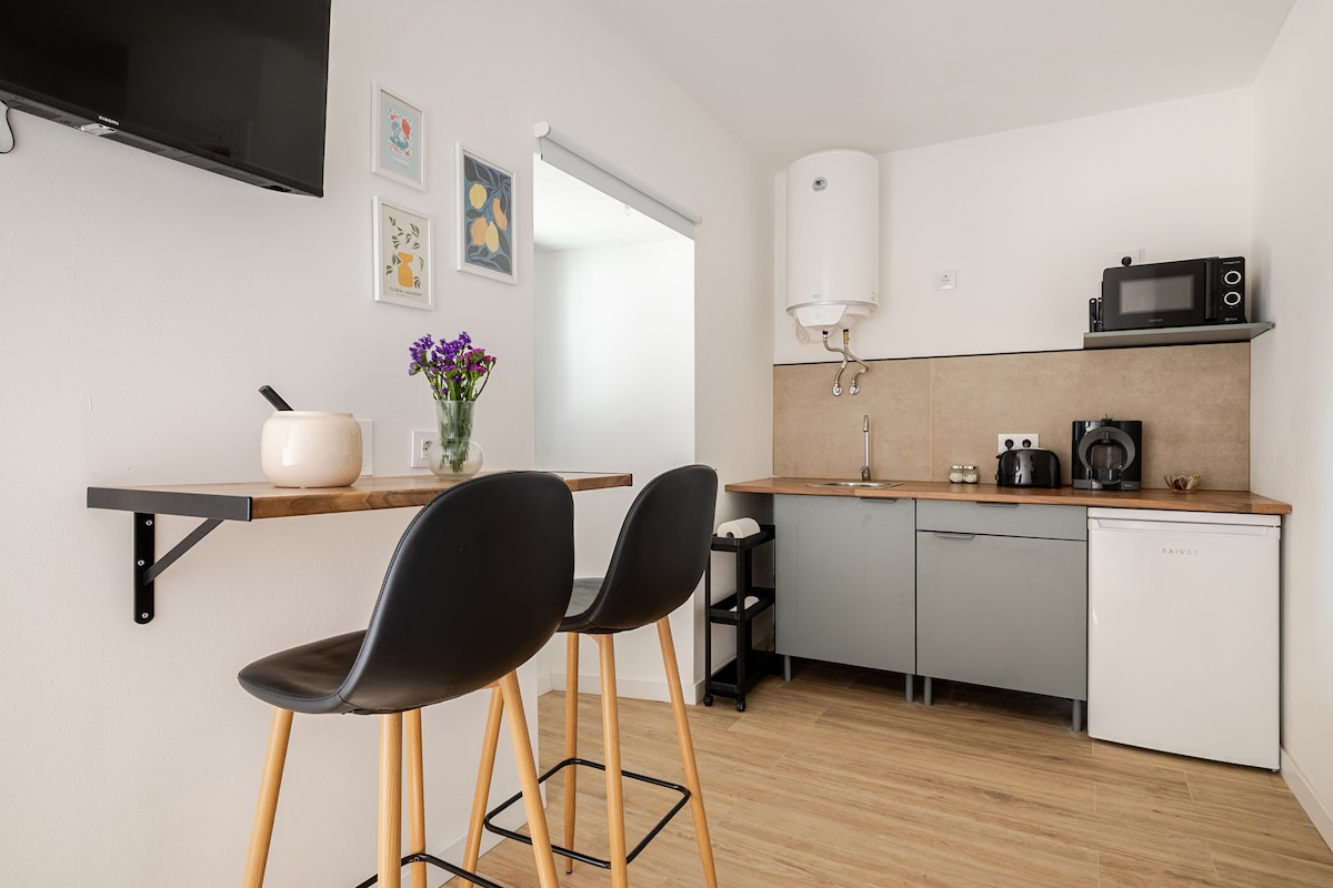 Kofinn CHUCHAMEL er tilvalinn fyrir tvo einstaklinga og pör með eitt eða tvö börn. Hún er fullbúin eldhúsi, borðstofu, stofu með sjónvarpi og sófa, baðherbergi með stálbaðkeri, hjónarúmi og opnu herbergi þar sem þú getur notið stofu með eldhúsi. Hin fallega viðarverönd og nokkrir sólbekkir til að slaka á eftir sund í frábæra Chuchamel-þeytivörunni eru staðsettir á stað með útsýni yfir hafið.