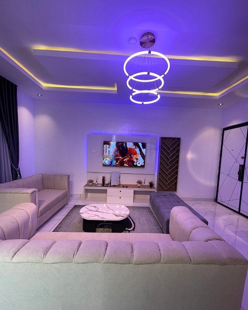 Þessi fallega, nýinnréttaða þriggja svefnherbergja íbúð er staðsett í öruggu lokuðu búi með öryggisgæslu allan sólarhringinn við Ipaja Road, Lagos. Samfélagið er mjög friðsælt og andrúmsloftið er rólegt. Íbúðin er fullbúin húsgögnum með sjónvarpi, DSTV, loftræstingu og viftu í stofunni og svefnherbergjunum. Eldhúsið er fullbúið með nútímalegum tækjum eins og þrýstieldavél, hrísgrjónaeldavél, rafmagnsblandara, brauðrist, katli, fallegum eldunaráhöldum, hnífapörum og öllum hnífapörum sem þarf til eldunar.