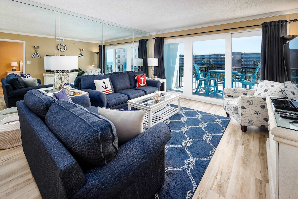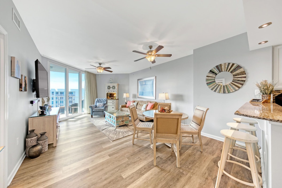 PRIME LOCATION. CORNER UNIT. 8th floor 24/7 front desk & security. Heated pools. more than 30days call for special pricing. Across the street from Big Kahuna's water park. We have the best view of the beach! Sleeps 6 . 2 high end queen sleeper sofas. It’s like sleeping on a real bed. king bed in the master, twin bunk beds in the hall. Good for families, couples, solo adventurers, relaxing vacations. Steps away-marina, waterpark ,shopping. Only unit directly on Beach with washer dryer