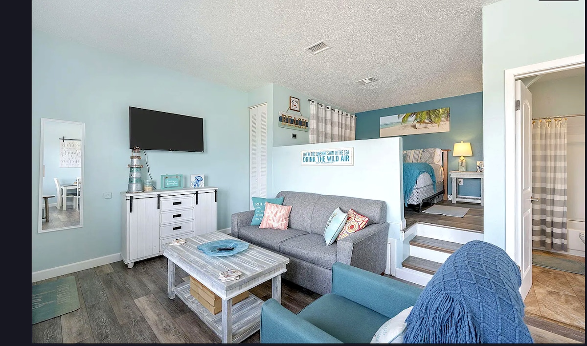 Um leið og þú kemur inn í íbúðina okkar við ströndina muntu skilja allt umhyggjuna eftir og slappa af á meðan þú nýtur beins útsýnis yfir Mexíkóflóa. Þú getur gengið niður á strönd beint úr byggingunni og þarft ekki að fara yfir neinar götur. Margar uppfærslur gerðar í mars 2021: glænýr svefnsófi í queen-stærð, glænýr ísskápur úr ryðfríu stáli, svið, uppþvottavél og örbylgjuofn, glæný húsgögn, ný málning, nýtt gólfefni og glænýtt sjónvarp. Við erum með Netflix og háhraða WiFi.