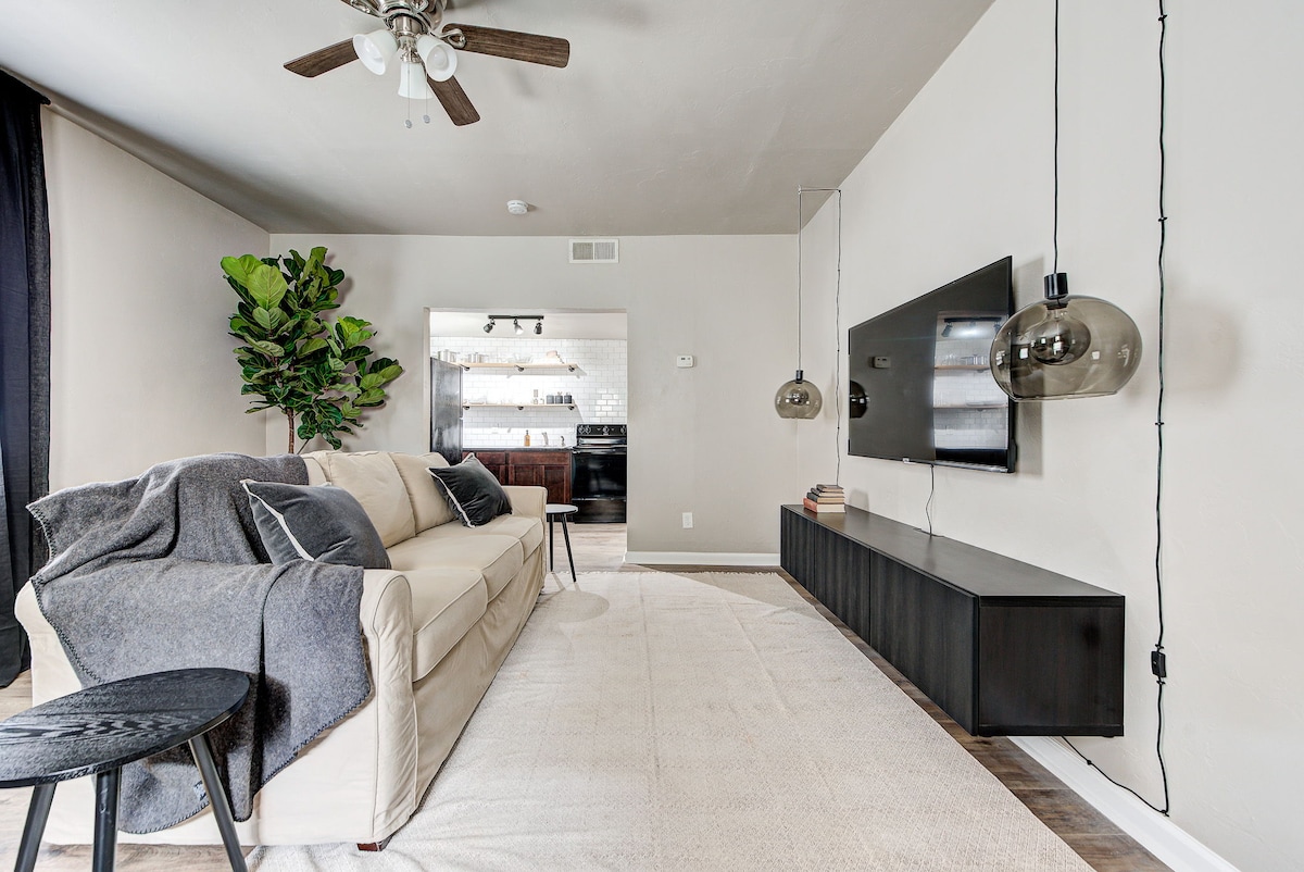 Staðsett í hjarta Midtown, mest æskilegt hverfi OKC. Fjölbreytt úrval veitingastaða, bara, kaffihúsa og tískuverslana eru steinsnar frá útidyrunum. Nútímaíbúðin var byggð árið 2020 og hefur verið tilnefnd TIL Uli-verðlauna (verðlaun fyrir arkitektúr). Það er með 2 rúmgóðar einkasvalir með fullkomnu útsýni yfir OKC sjóndeildarhringinn. Íbúðin er með hreina, glæsilega hönnun og er fullbúin fyrir skammtímagistingu eða langtímagistingu.