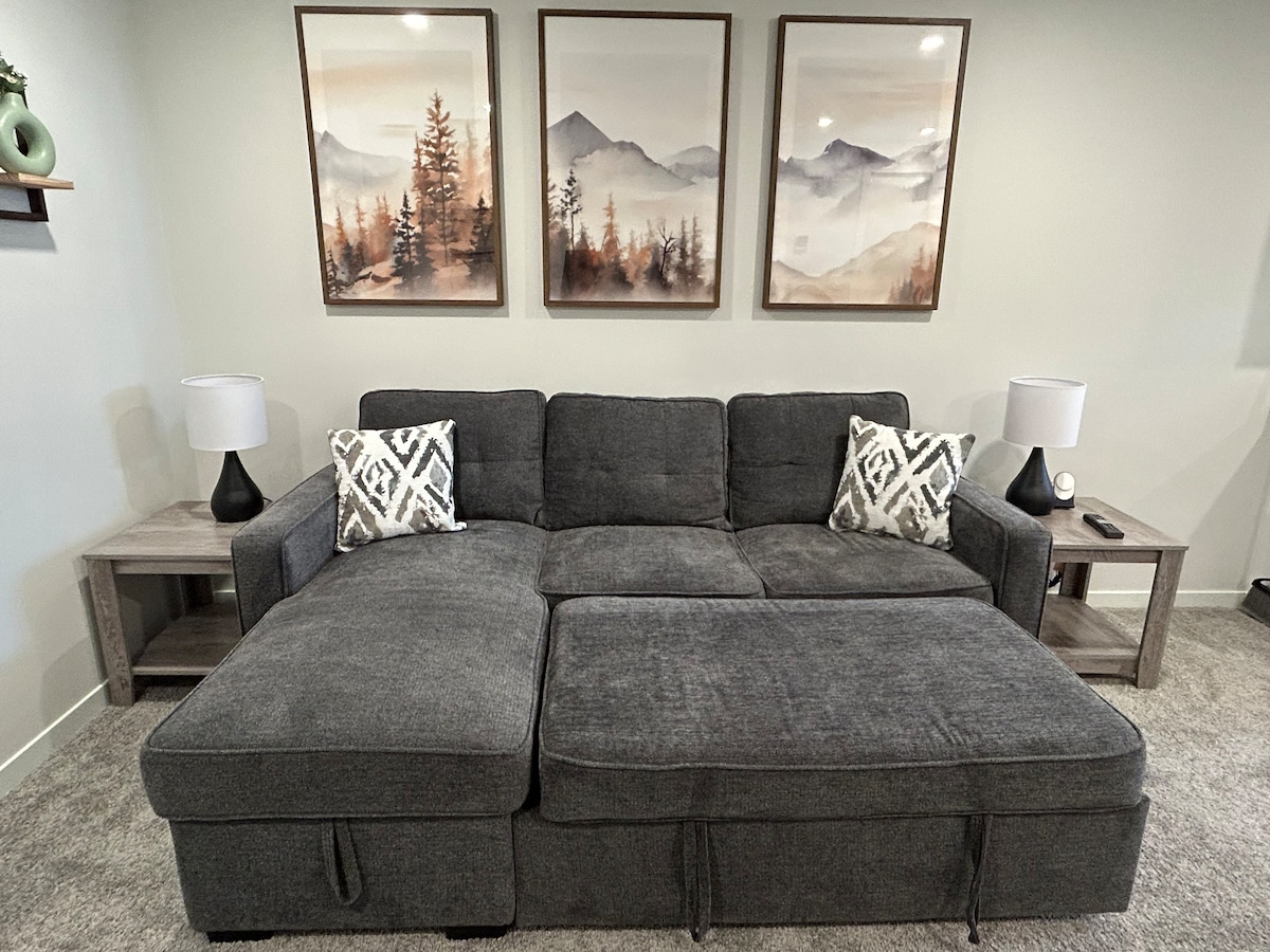 Verið velkomin í notalegu kjallarasvítu okkar í bænum Okotoks. Þetta er svíta með einu svefnherbergi og queen-rúmi í herberginu ásamt annarri drottningu sem felur rúm í stofunni. Þú hefur aðgang að öllum þægindum sem Okotoks og svæðið hefur upp á að bjóða í innan við 5-10 mínútna akstursfjarlægð. Í boði er „Anytime Fitness“, „Okotoks Rec Center“ og „Field House“ með mörgum líkamsræktarvalkostum. Það eru margir frábærir slóðar og stígar í nágrenninu.
