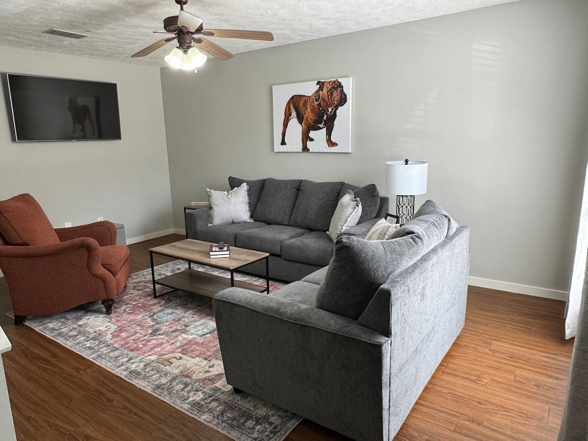 Gaman að fá þig í hópinn!! Við erum með fullkomið 1, 800 fermetra heimili að heiman!„ Við bjóðum upp á frábært umhverfi til að„vinna heiman frá “með hröðu og áreiðanlegu þráðlausu neti og tveimur vinnusvæðum/skrifborðum. Okkur finnst einnig æðislegt að deila öðru heimili okkar með aðdáendum Bulldog og aðdáendum teymisins. Heimili okkar er upplagt fyrir fjölskyldu og vini eða þegar þú ert í bænum til skamms eða lengri tíma. Við viljum að upplifun þín sé persónuleg og þægileg sama hver ástæðan er fyrir því að þú kemur til Airbnb.orgville.