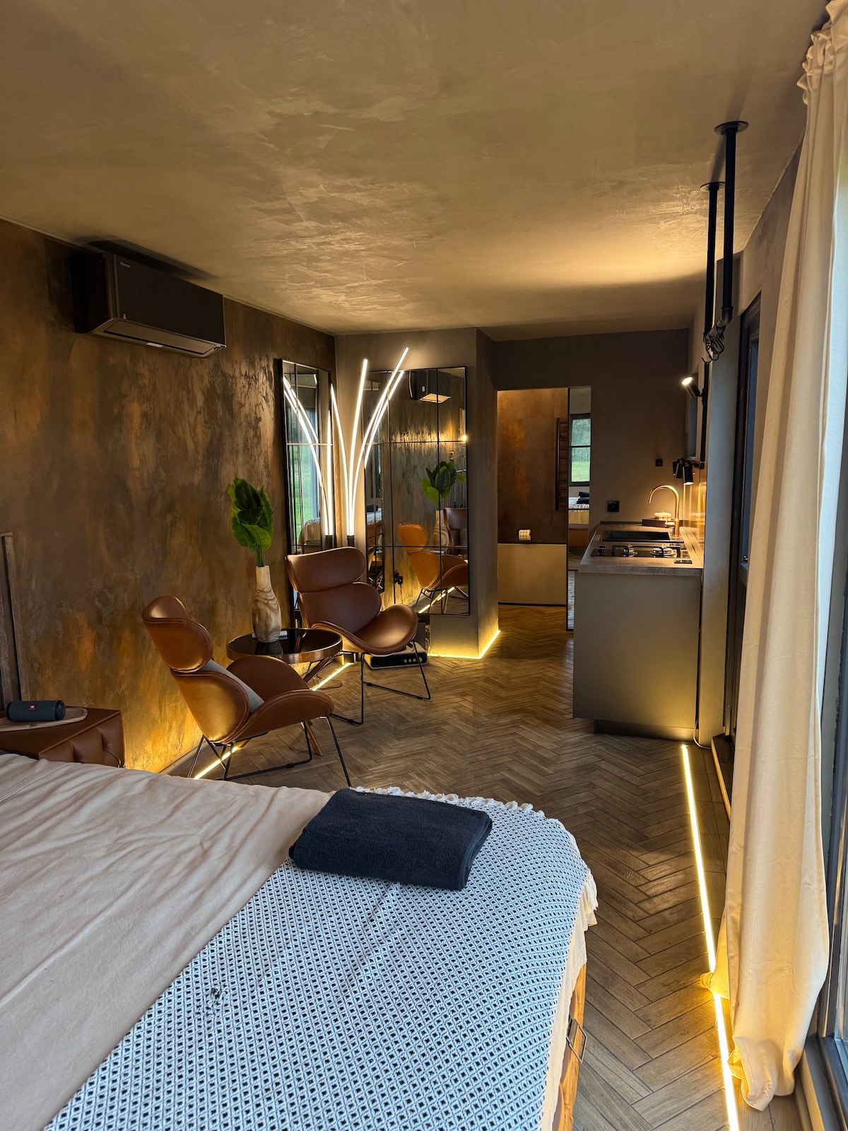 The Mirror House is positioned so that its terrace offers the perfect spot to enjoy the evening sunset. From the terrace, you can admire the view of the lake, which gains a special charm at sunset. Relaxing in the jacuzzi on the terrace, you can fully experience the surrounding nature. The mirrors of the house reflect this play of light, adding extra magic and harmony.
