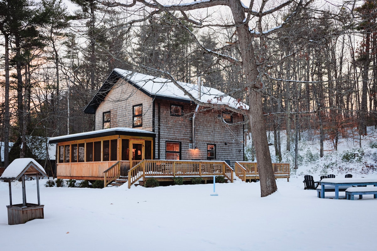 Fylgstu með okkur á IG @anchorunwind. Stökktu út í falda gersemi í hjarta Kennebunkport-svæðisins þar sem nútímaþægindi mæta kyrrð náttúrunnar. Kofinn okkar býður upp á ógleymanlega orlofsupplifun. ✭„... Staðsetning verður að vera til staðar. Gestgjafinn var mjög hjálpsamur og einlægur...“ ✭„...Við höfum ferðast um allan heim og þetta er á þremur vinsælustu Airbnb stöðunum okkar sem við höfum gist á.“