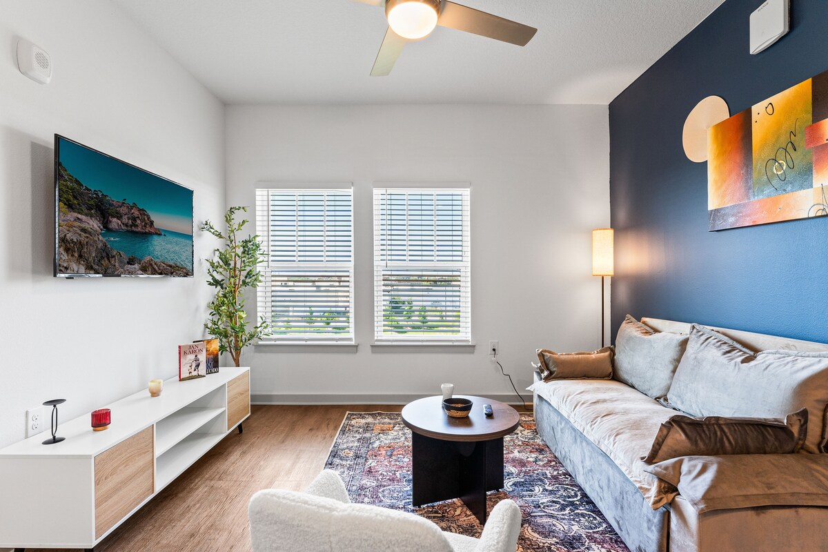 Verið velkomin í töfrandi gáttina þína – aðeins 10 mínútum frá töfrandi almenningsgörðum Orlando! Staðsetning: Íbúðin okkar er fullkomlega staðsett fyrir Disney og Universal og býður upp á friðsælt afdrep með öllum þægindum heimilisins. Hvort sem þú ert hér til að slaka á töfrunum eða jafnvel dvelja lengur muntu elska hvert augnablik í notalegu eigninni okkar. Eignin rúmar fjóra! VINSAMLEGAST HAFÐU SAMBAND VIÐ OKKUR TIL AÐ SENDA FYRIRSPURN UM ANNAN MÖGULEGAN AFSLÁTT FYRIR MARGRA DAGA DVÖL