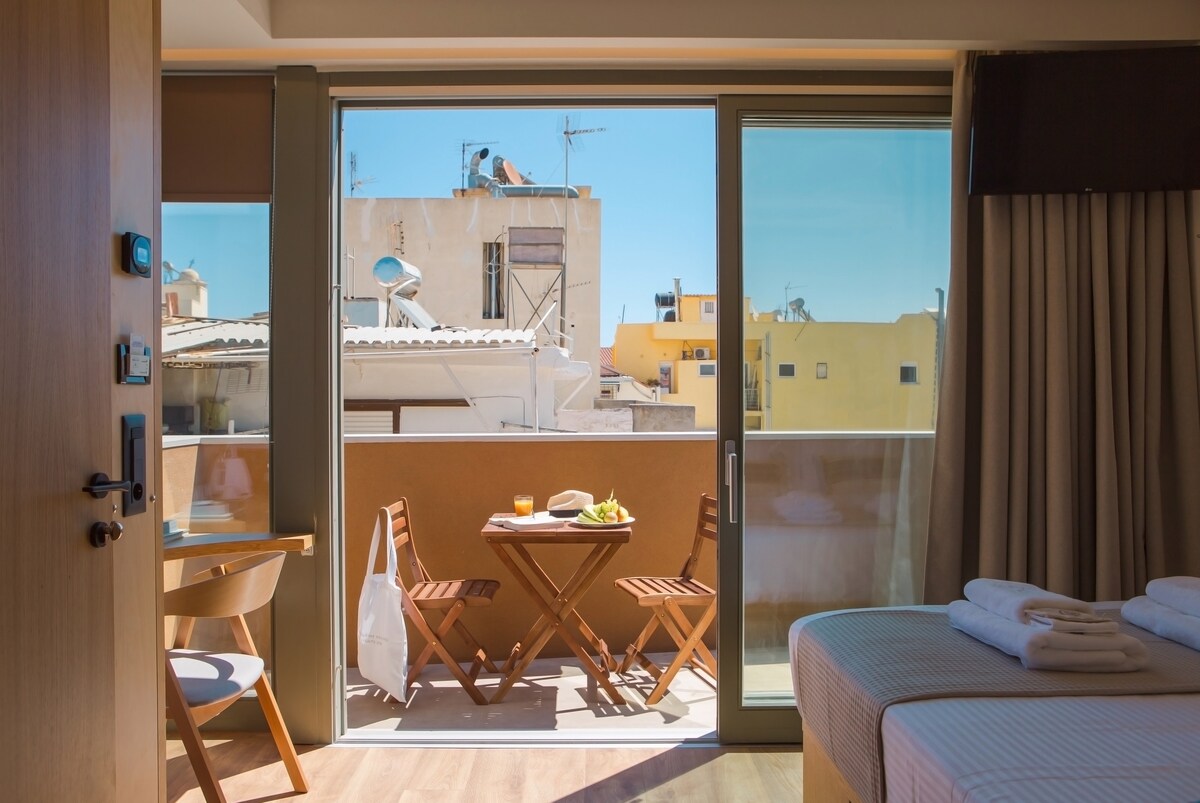 Uppgötvaðu nútímalegt og fágað umhverfi í fornri sögulegri byggingu og byrjaðu að kynnast Chania, fallegustu borg Grikklands. Öll herbergin eru hljóðeinangruð og með útsýni yfir hljóðlátar aðliggjandi götur: þetta gerir gestum kleift að sofa rólega og rólega! Meðal annarrar þjónustu gerir rafræni lykillinn gestum kleift að finna fyrir algjöru sjálfstæði. Í öllum herbergjum er auk þess boðið upp á te- og kaffiaðstöðu