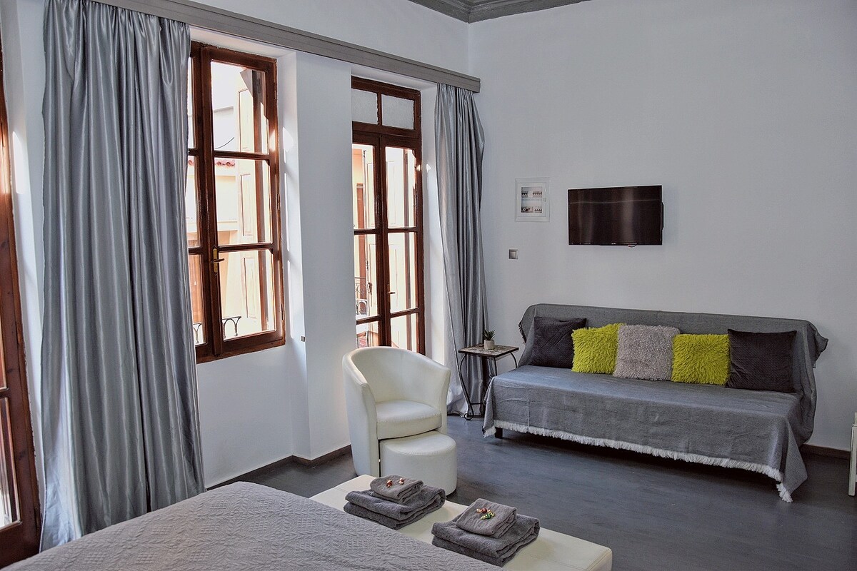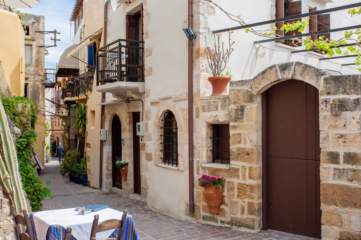 Íbúðin okkar er staðsett í þröngum götum Old Harbour í Chania. Margir veitingastaðir, kaffistofur og barir eru í stuttri göngufjarlægð en það býður upp á greiðan aðgang að almenningssamgöngum ef þú þarft á því að halda, þar sem það er nálægt miðborginni. Það er fullbúið rafmagnstækjum og húsgögnum sem gerir það tilvalið fyrir pör, litlar fjölskyldur og viðskiptaferðamenn.