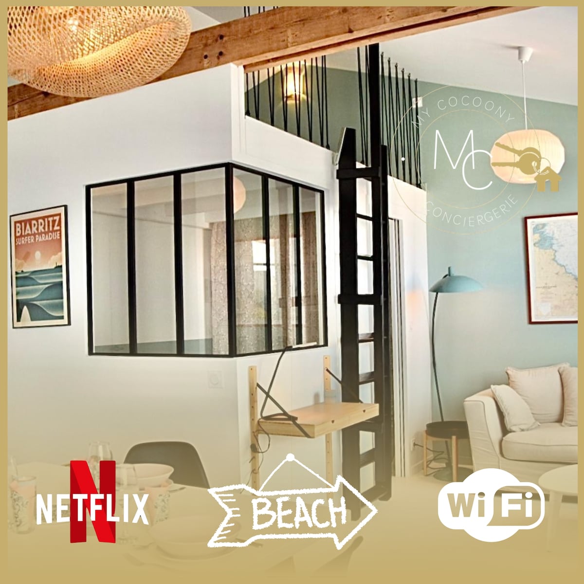 Slakandi frí frá lofthæðinni okkar * *** til að lifa í ást og vellíðan. Aðeins nokkrum mínútum frá lestarstöðinni , 13 mínútum frá brekkunni, höfnum og nálægt öllum verslunum við rólega götu. Þetta ástarhreiður samsvarar alvöru lúxushótelsvítu sem er alveg uppgert í notalegu andrúmslofti með tvöföldu einkabaðkari. Viltu flýja, koma og kúra upp til að deila ógleymanlegri minningu. Vottuð gisting - 4 stjörnur Valfrjáls stór bílskúr (sjá ástand)